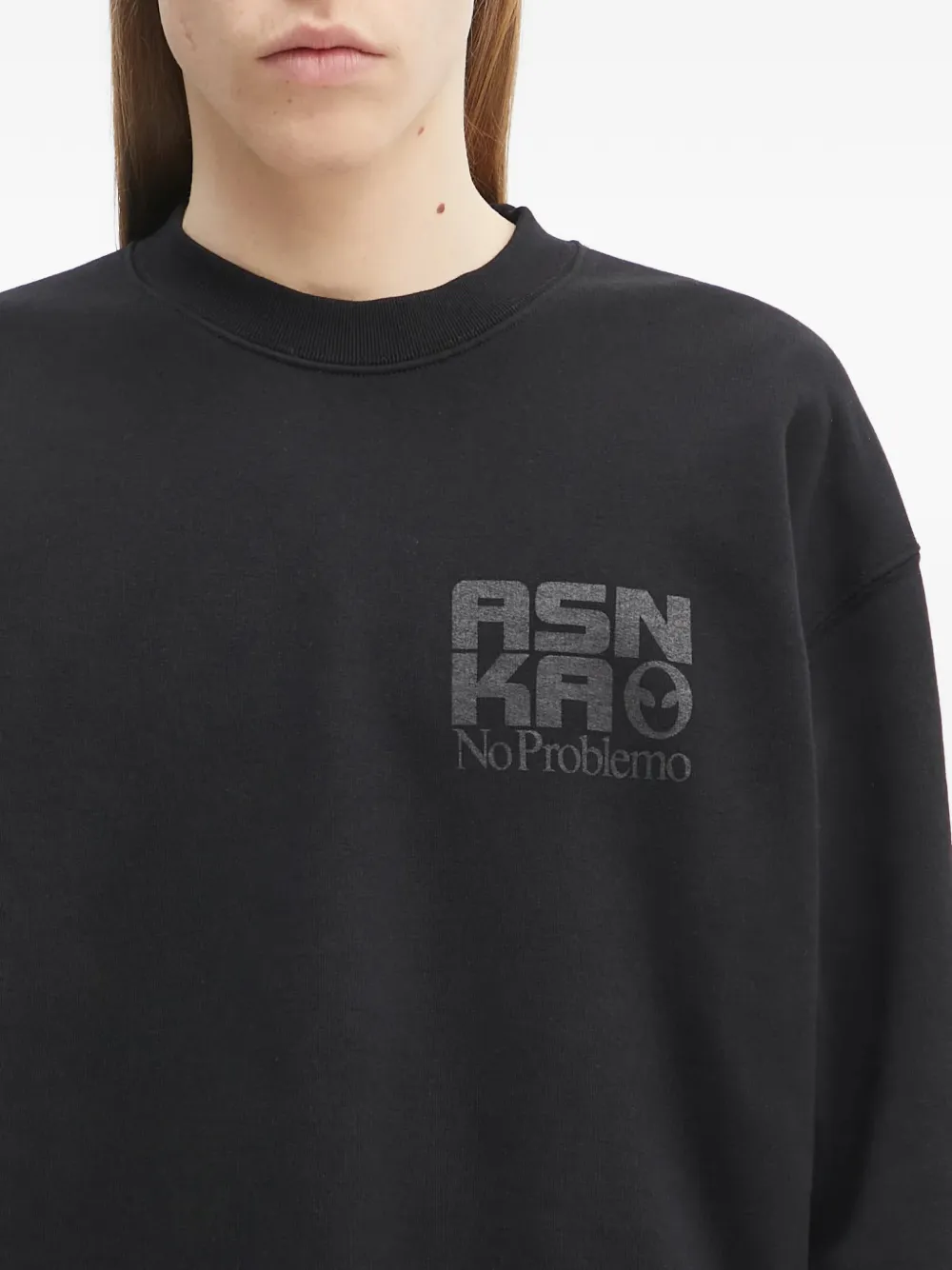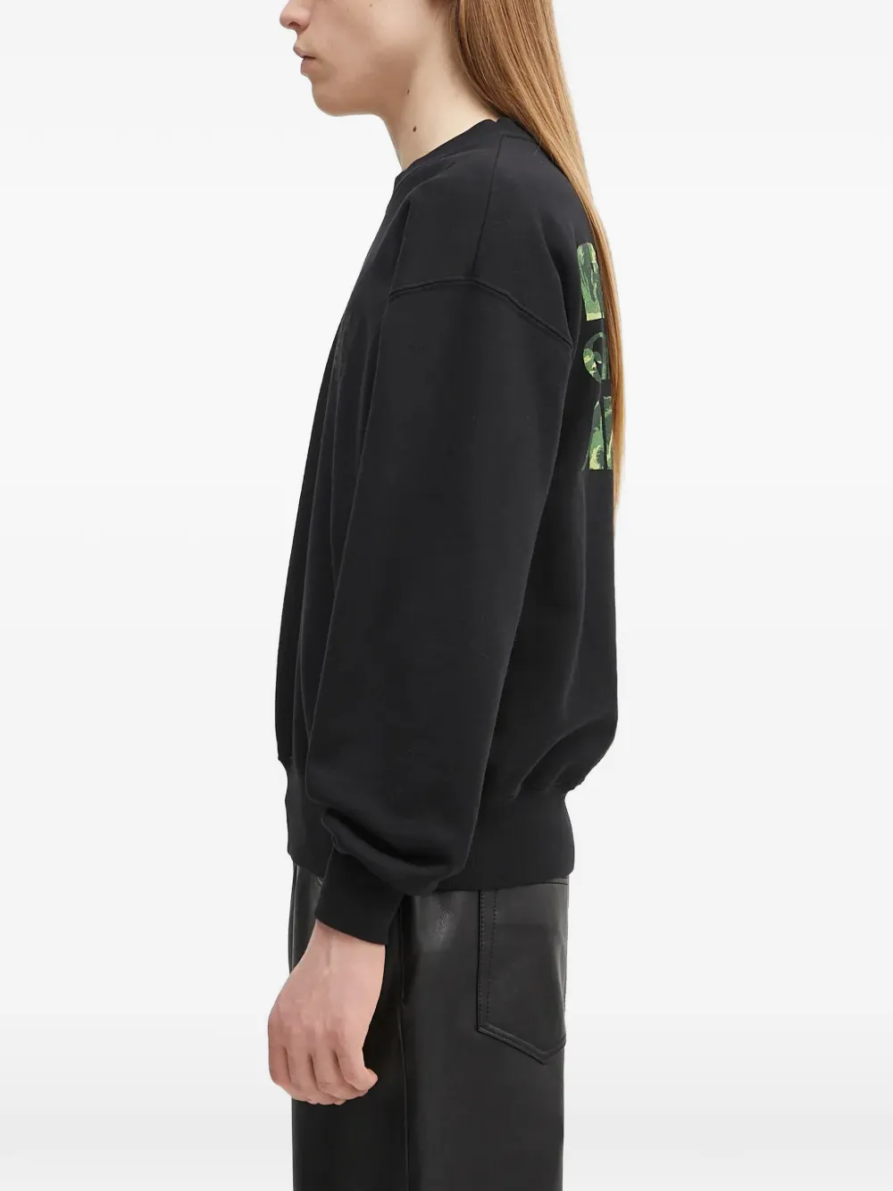 Черный свитшот с графическим принтом, круглый вырез, длинные рукава, ребристые манжеты и низ