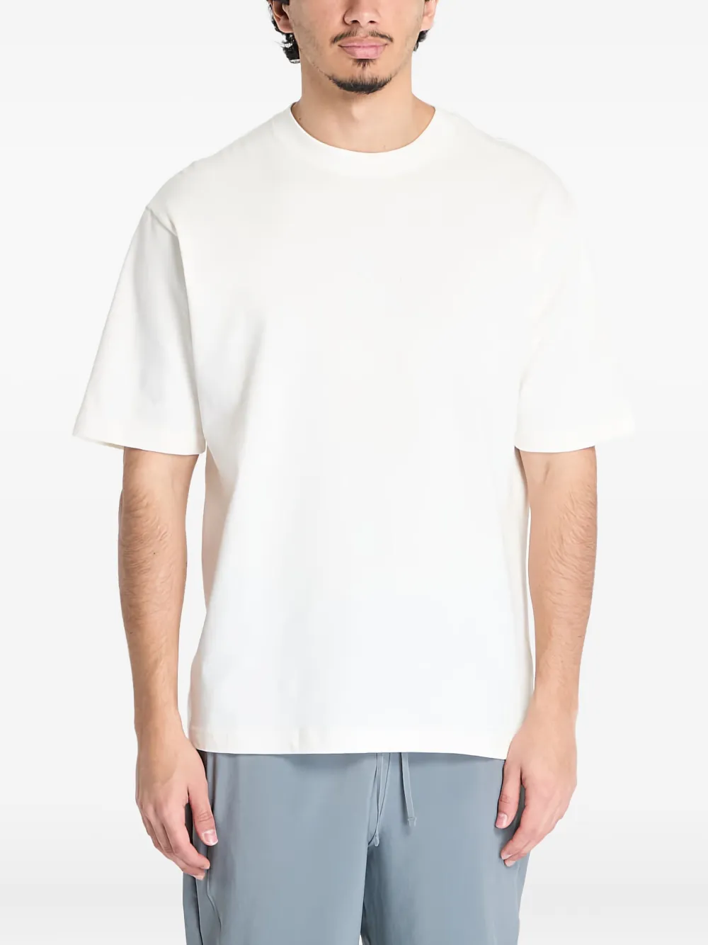 Белая футболка с круглым вырезом и короткими рукавами