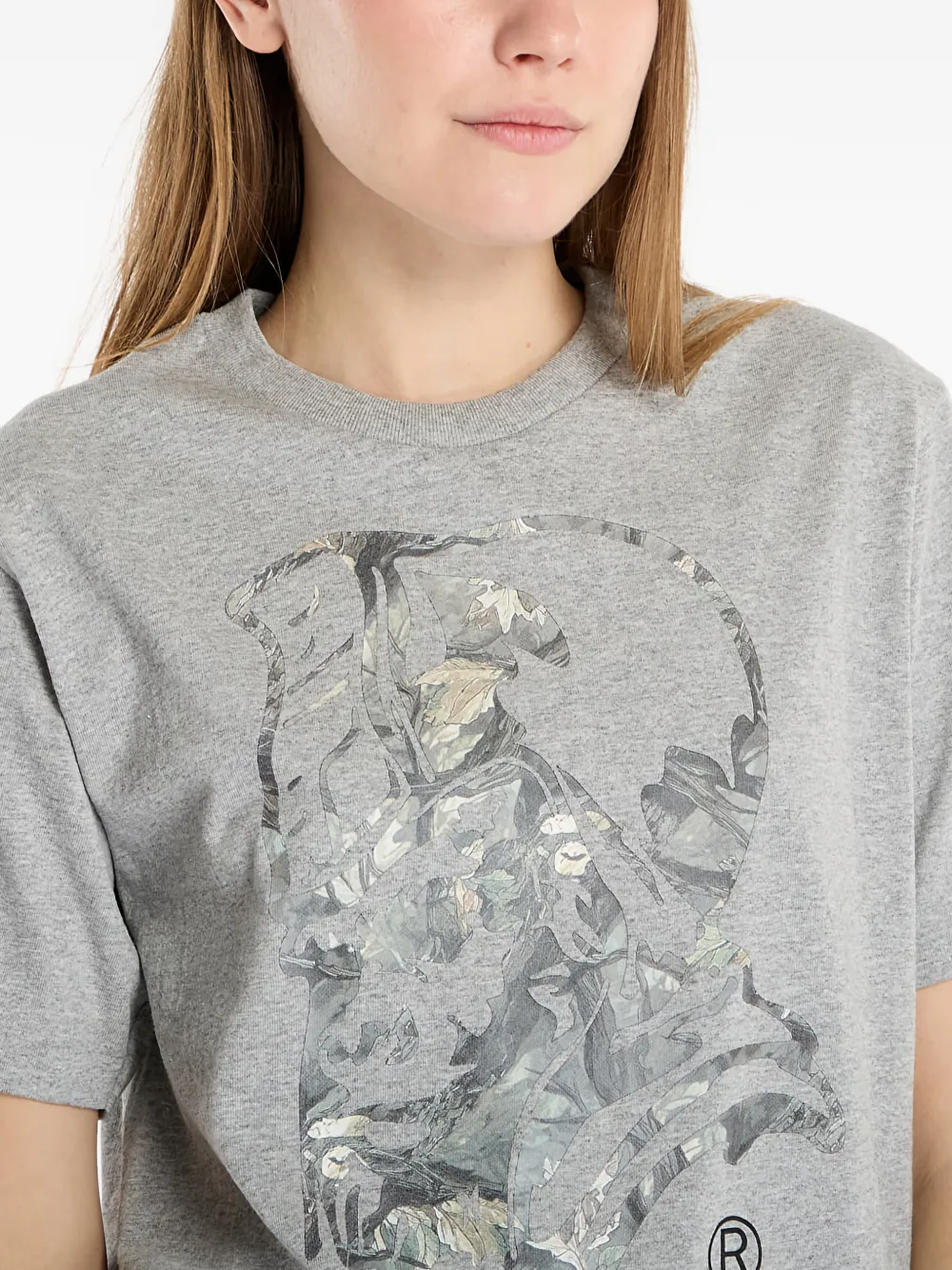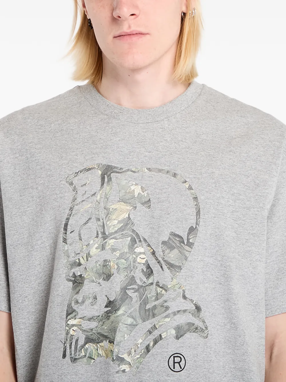 Серая футболка с графическим принтом, круглым вырезом и короткими рукавами