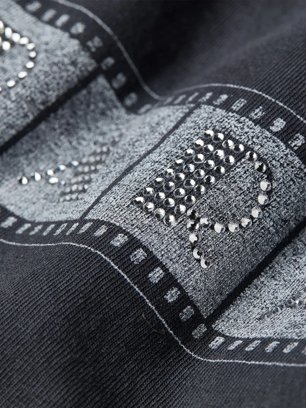 Черный декор из страз графика с кинолентой круглый вырез короткие рукава хлопок