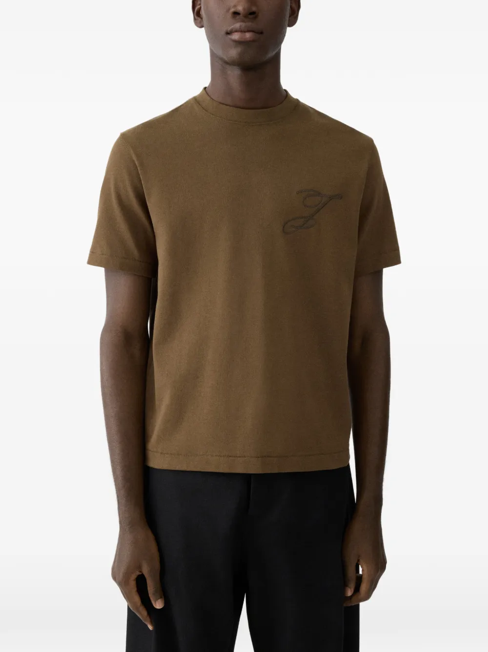 Хаки зеленый, вышитый логотип, круглый вырез, короткие рукава, прямой подол