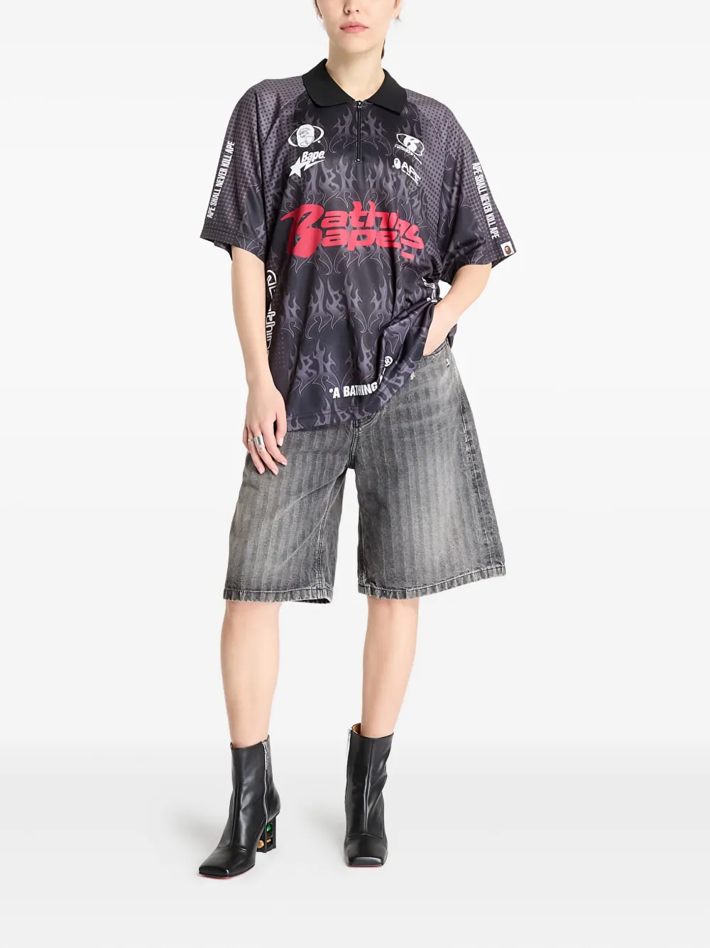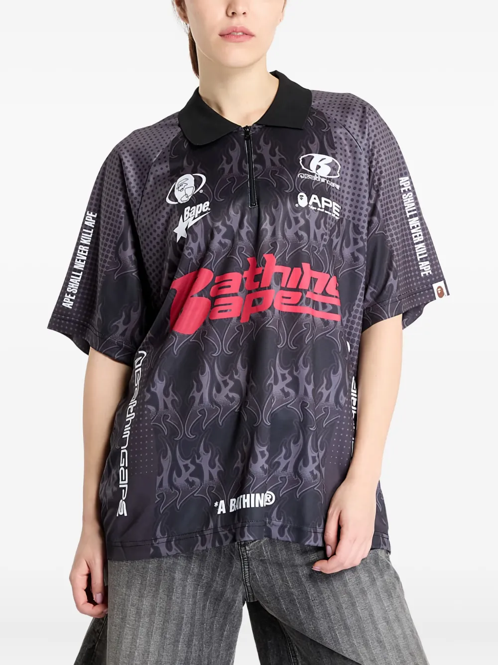 Футболка с принтом "пламя" A Bathing Ape, черный