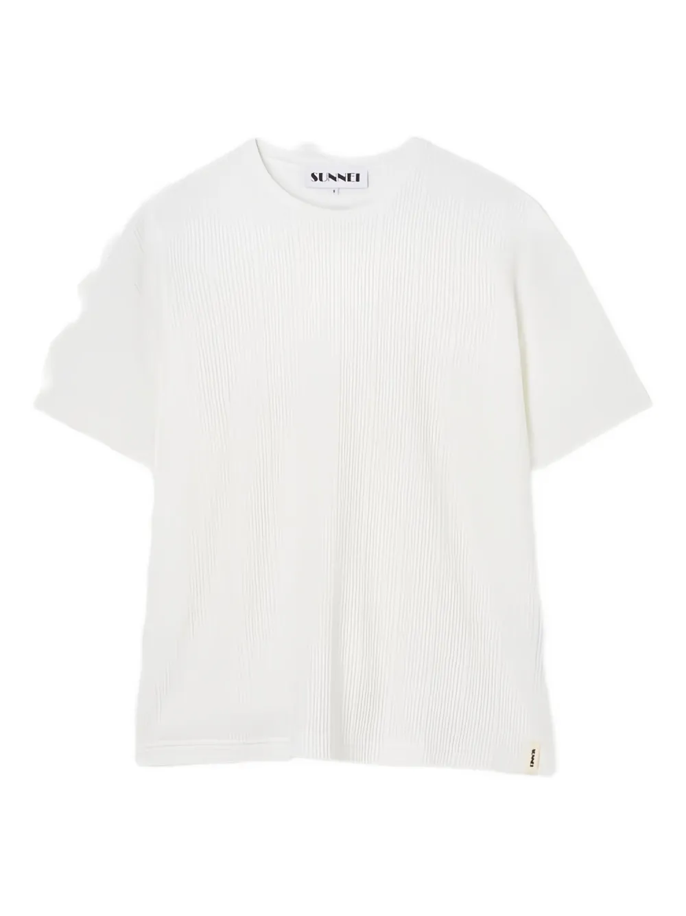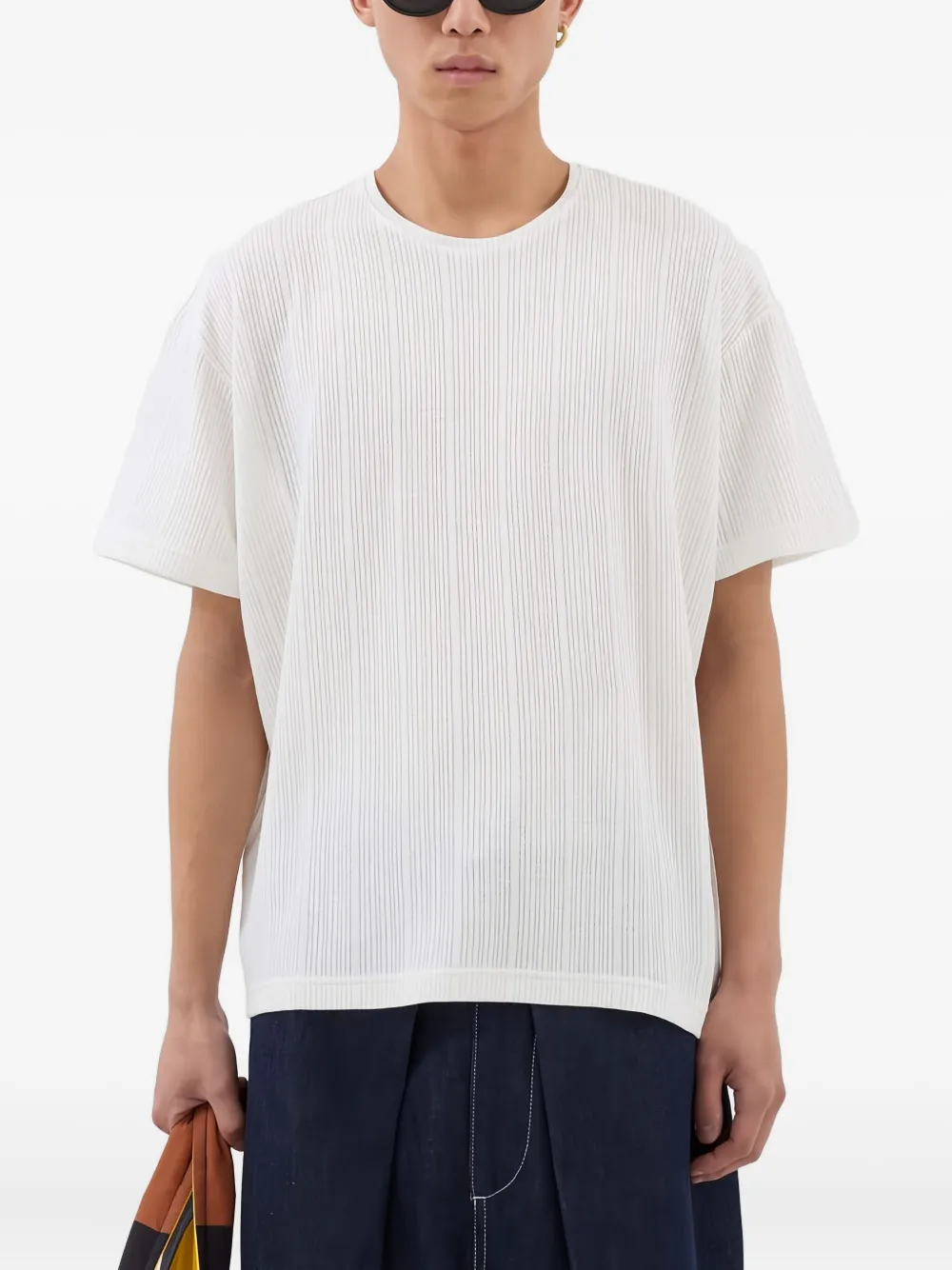Белый фактура в рубчик круглый вырез короткие рукава прямой крой прямой низ