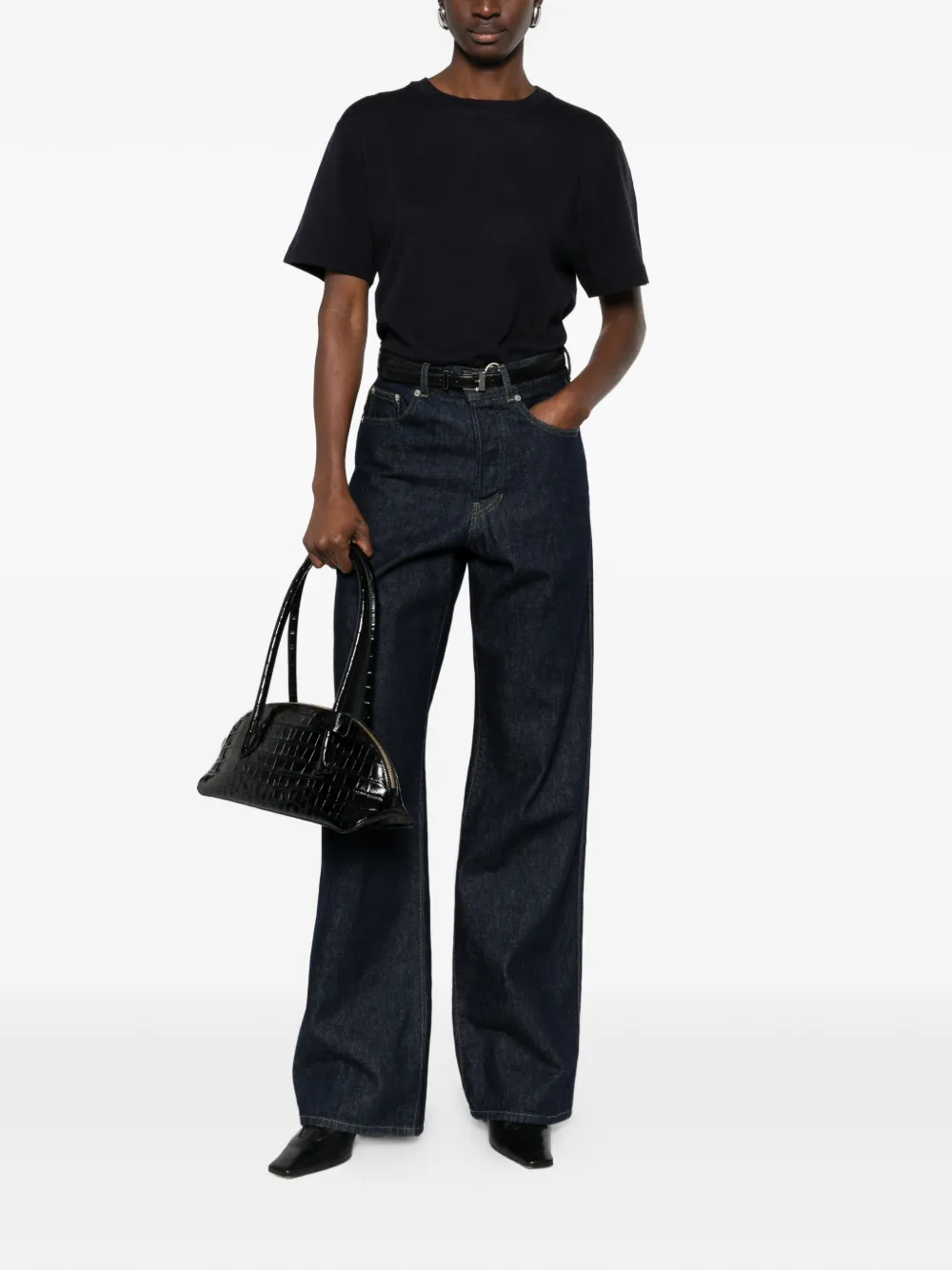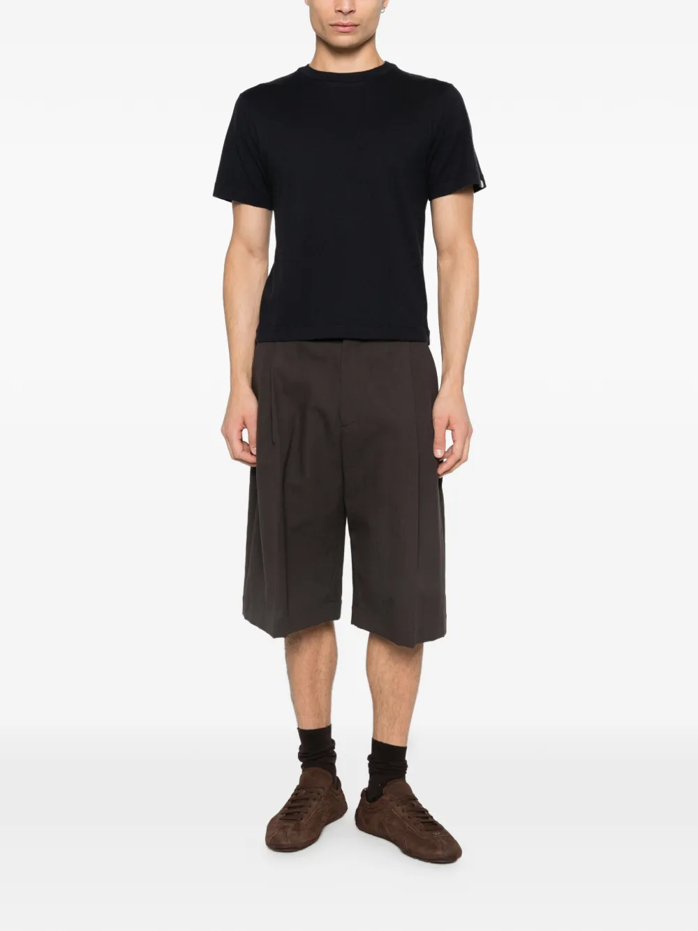 Синий тонкий трикотаж, короткие рукава, круглый вырез, прямой край