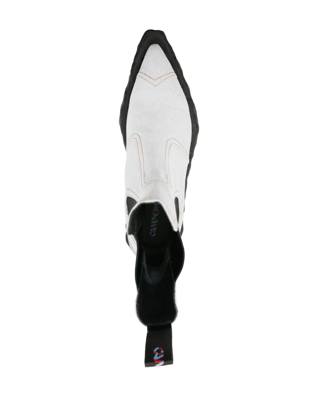 Черный/синий, деним, контрастная строчка, эластичные вставки, петля для подтягивания сзади, логотип на подошве, заостренный носок, модель без застежки, кожаная стелька с логотипом и массивная резиновая подошва.