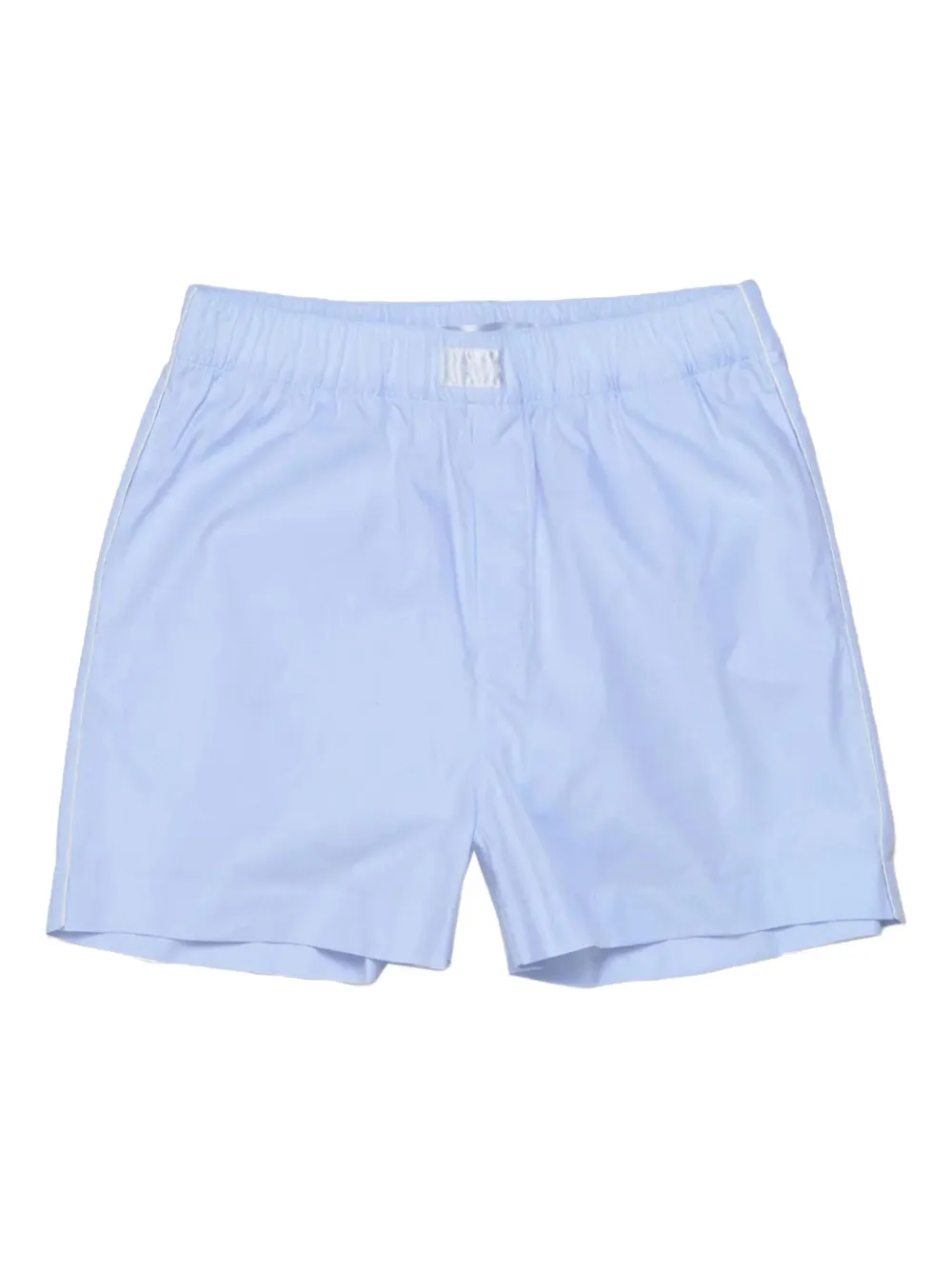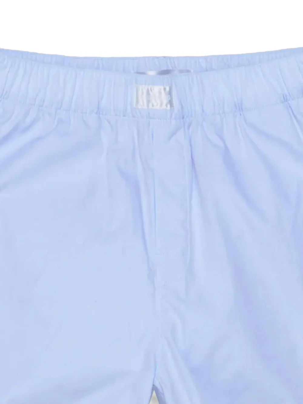 Светло-голубые брюки с эластичным поясом, боковым кантом и застежкой на пуговицы
