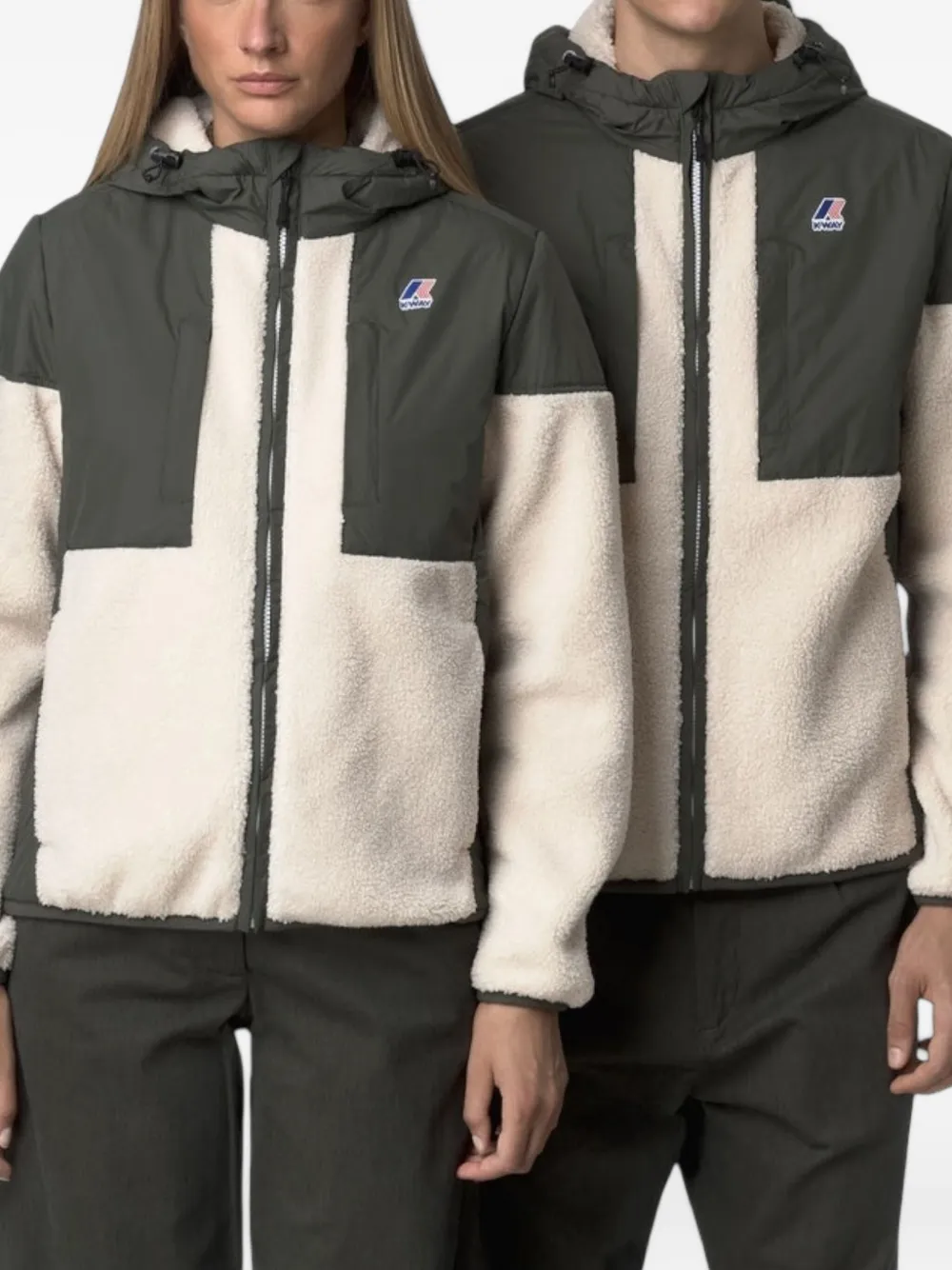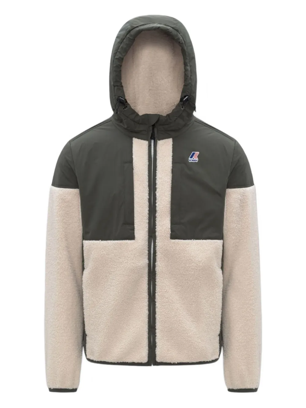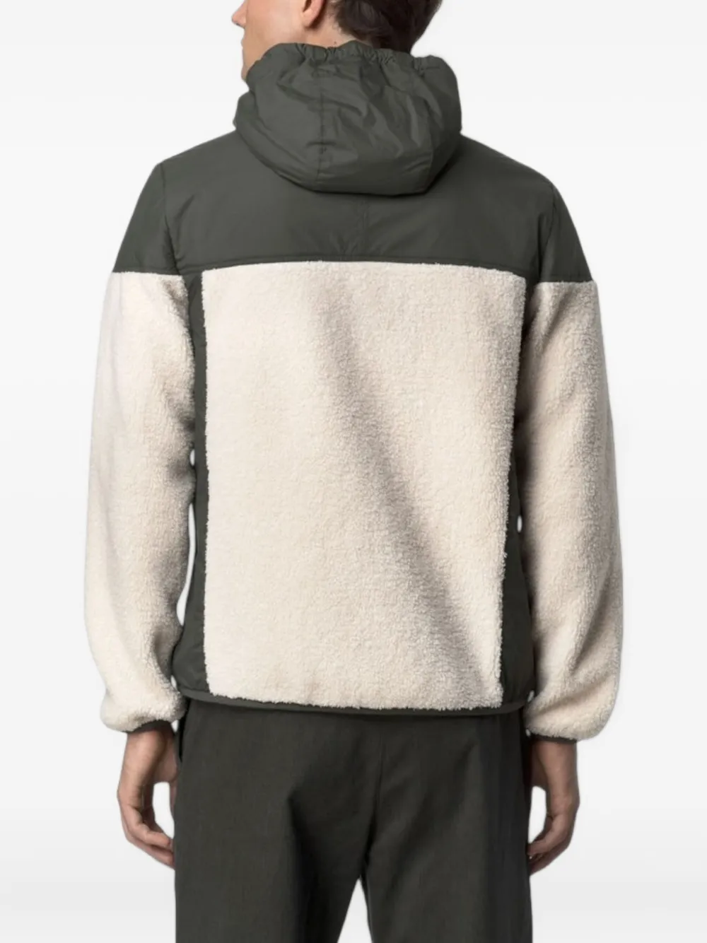 Зеленая и белая куртка с капюшоном, нашивкой с логотипом, застежкой на молнию, панельным дизайном и длинными рукавами