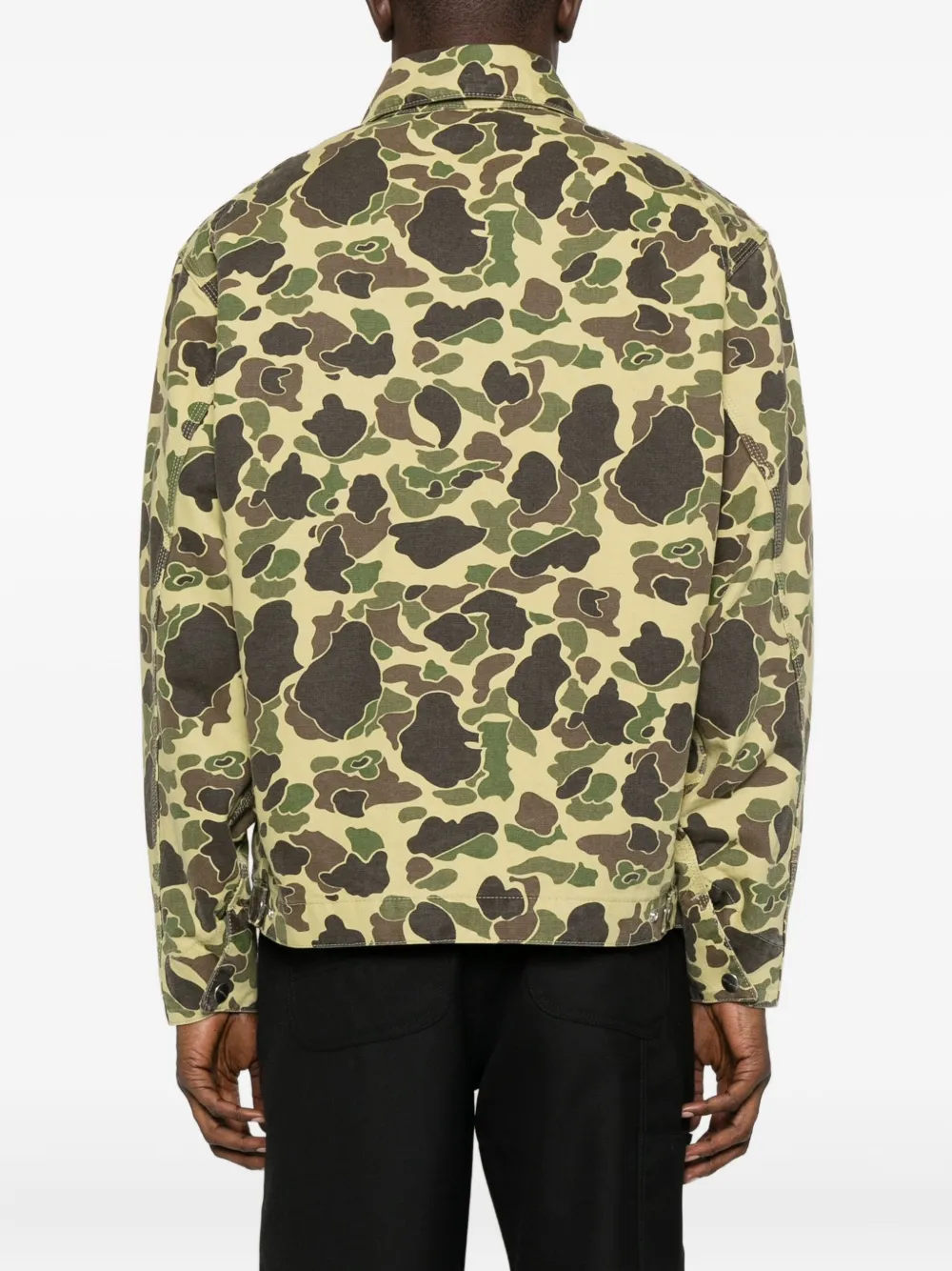 Зеленый камуфляжный принт застежка-молния спереди прорезные карманы длинные рукава воротник-стойка