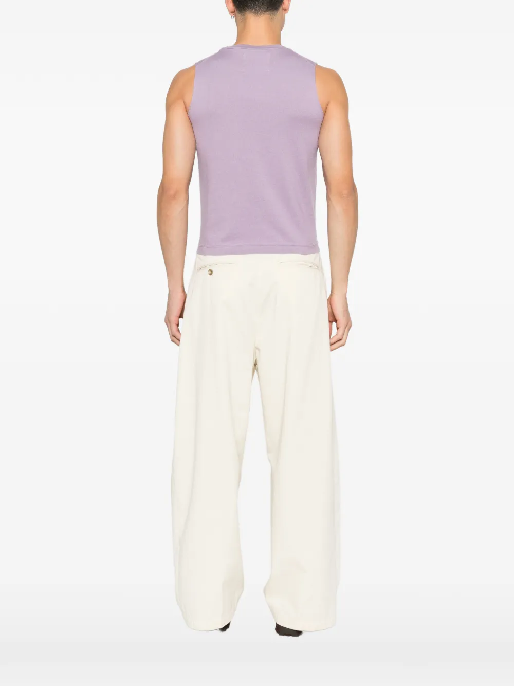 Лиловый топ без рукавов с круглым вырезом, мелкой вязки, с прямым краем