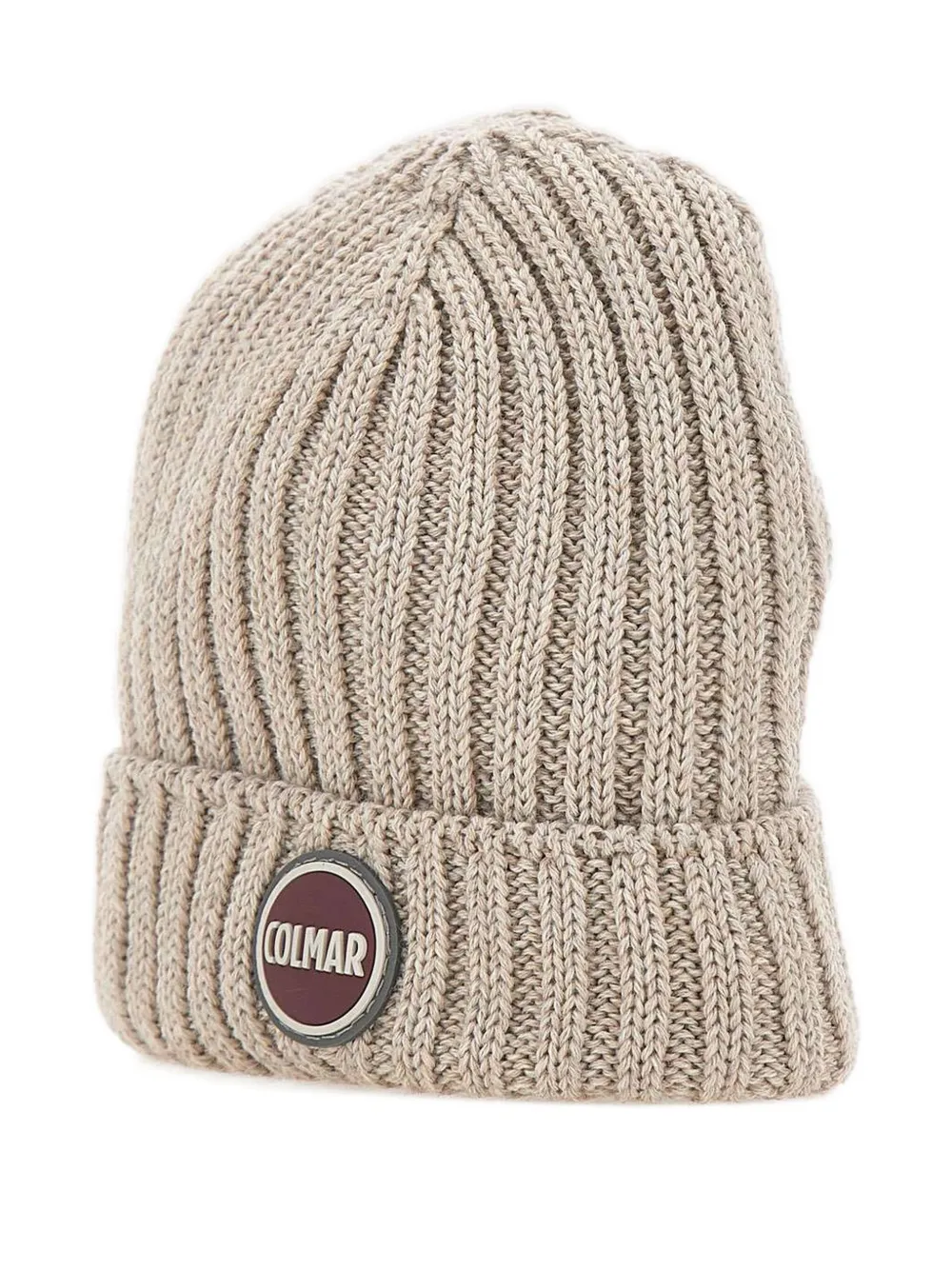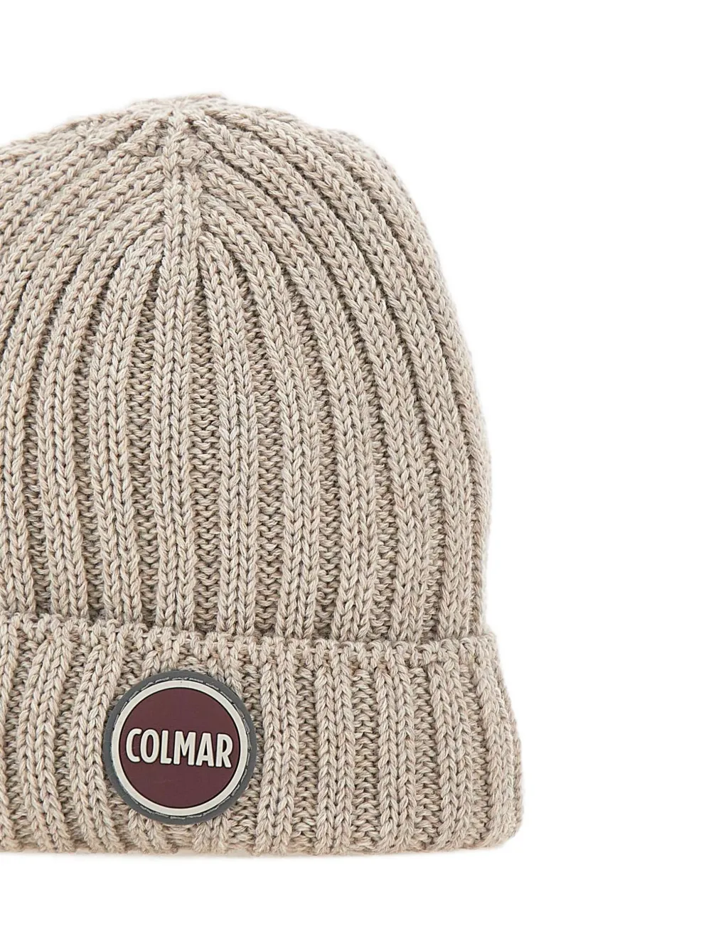 Бежевый рубчатая текстура смесь шерсти нашивка с логотипом