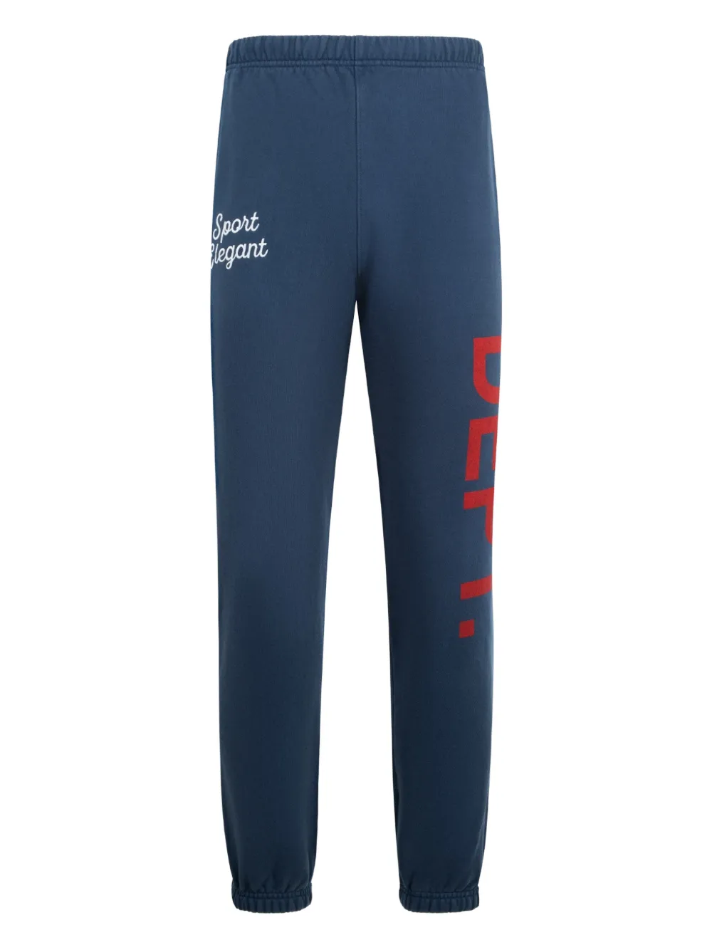 Темно-синий, принт с надписью, боковые карманы, эластичный пояс, эластичный низ