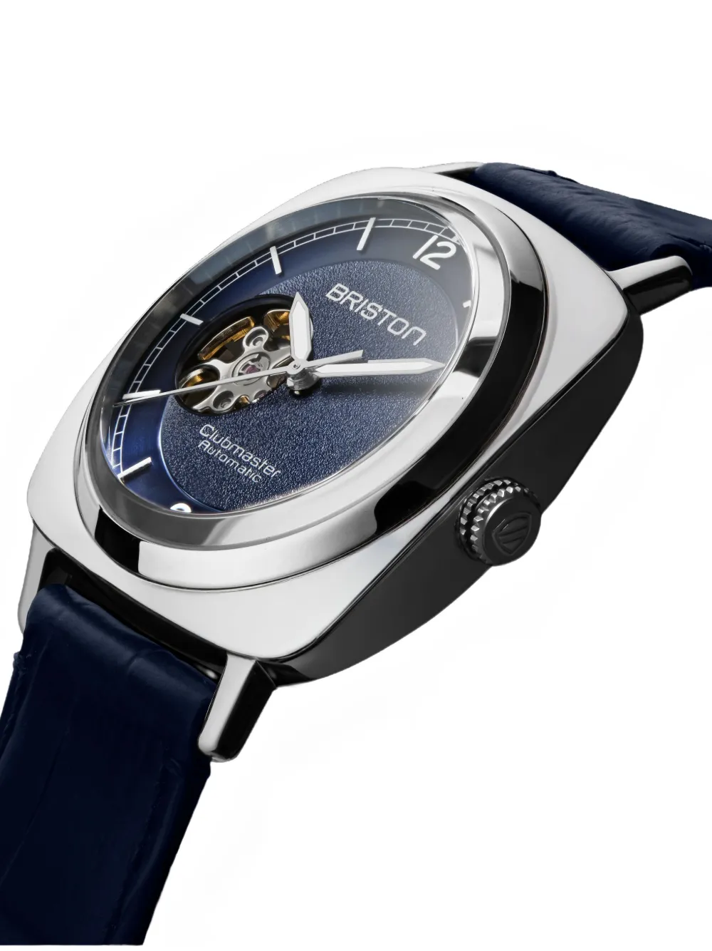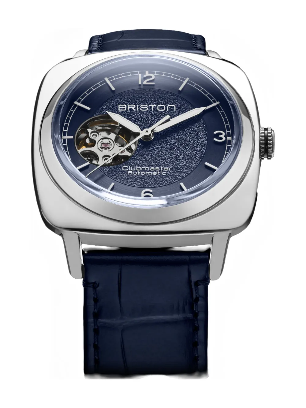 Синий 39 мм нержавеющая сталь квадратная форма корпуса циферблат с открытым механизмом текстурированный циферблат гладкий безель автоматический механизм заводная головка с резьбой Этот товар поставляется с официальной годовой гарантией от бренда.