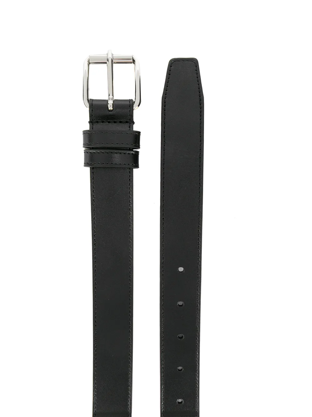 Ремень с квадратным концом от Comme des Garçons Wallets. Серебристая пряжка, петли для ремня, детали из пробивных дырок и квадратный конец. Цвет: черный.