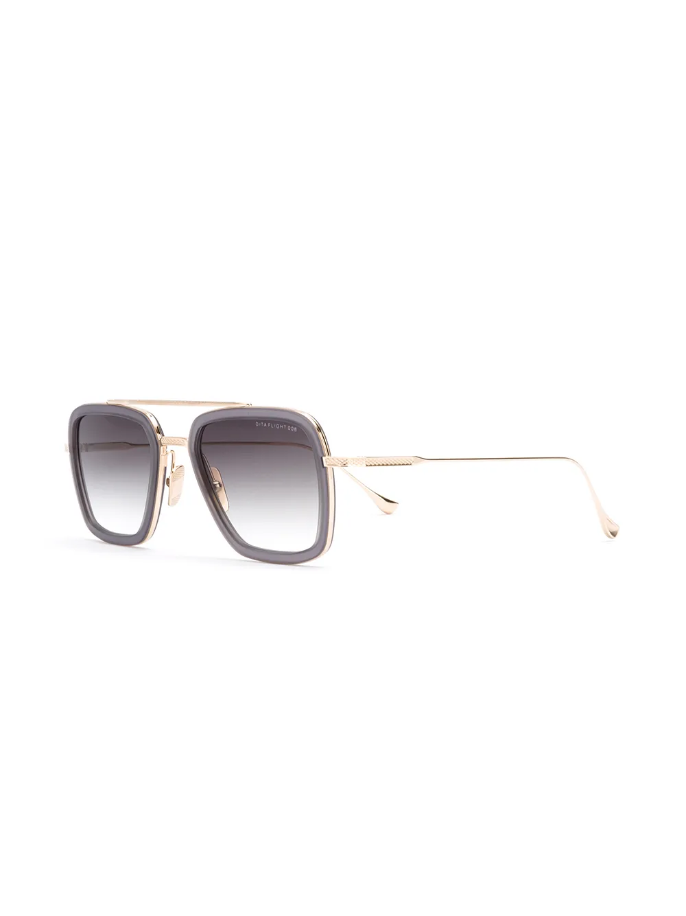 Солнцезащитные очки Flight 006 от Dita Eyewear. Матовая отделка, квадратная оправа, градиентные линзы, золотистые дужки и узкая верхняя планка. Цвет: серый. Прилагается защитный чехол.