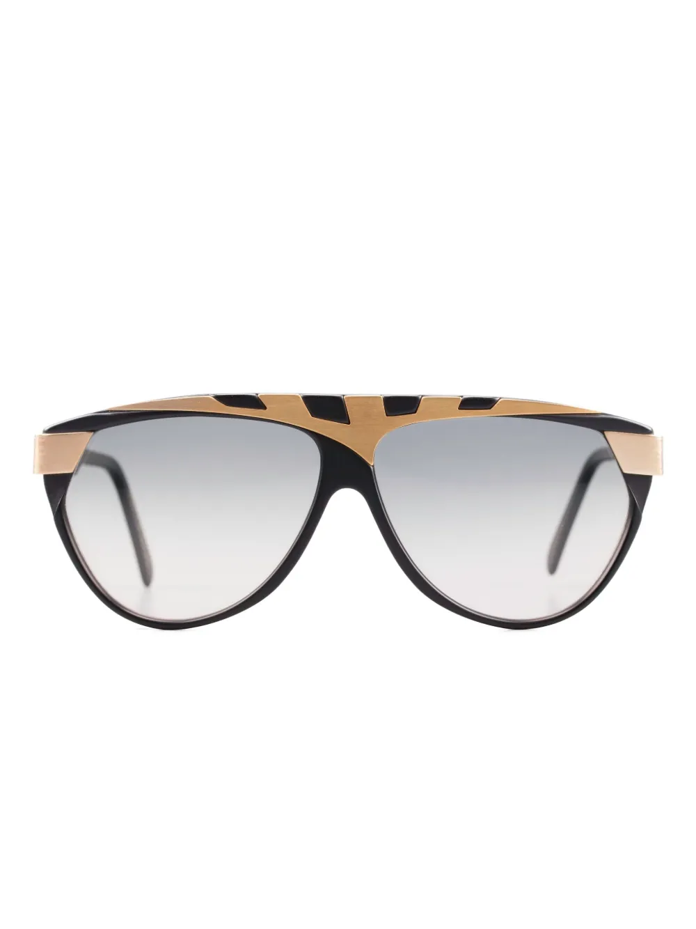 Черная и коричневая геометрическая оправа золотистые акценты тонированные линзы носовые упоры градиентные линзы Эти очки поставляются с защитным футляром.