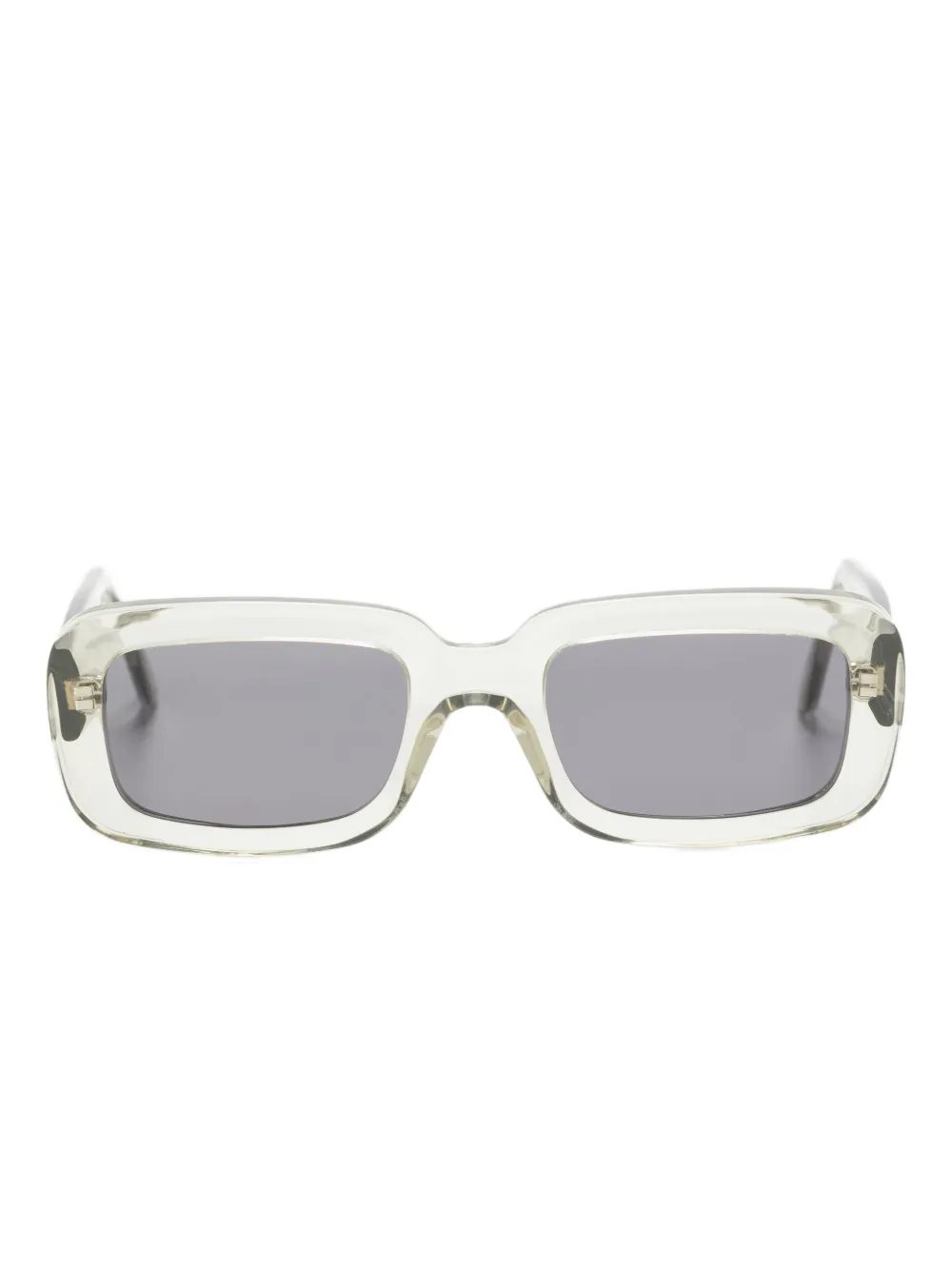 Светло-бежевый прямоугольная оправа серые линзы ненавязчивый брендинг прямые заушники Эти очки поставляются с защитным футляром.