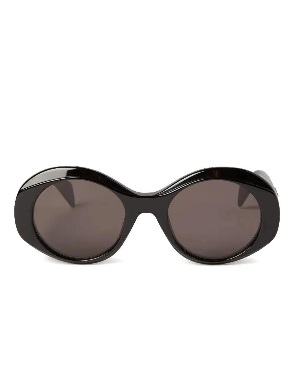 Черный, круглая оправа, затемненные линзы, серебристый металлический логотип, закругленные дужки и линзы с защитой от ультрафиолета. В комплект входит защитный чехол для очков.