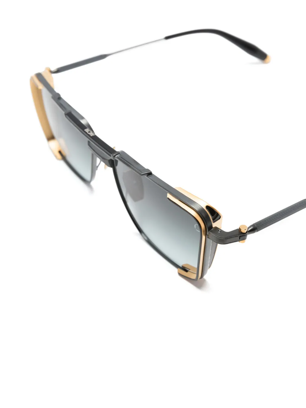 Черный, золотистый, металл, квадратная оправа, градиентные линзы, линзы с защитой от ультрафиолета, защитная пленка, двойной мост, носоупоры, прямые дужки и дужки с закругленными концами. В комплект входит защитный чехол для очков.
