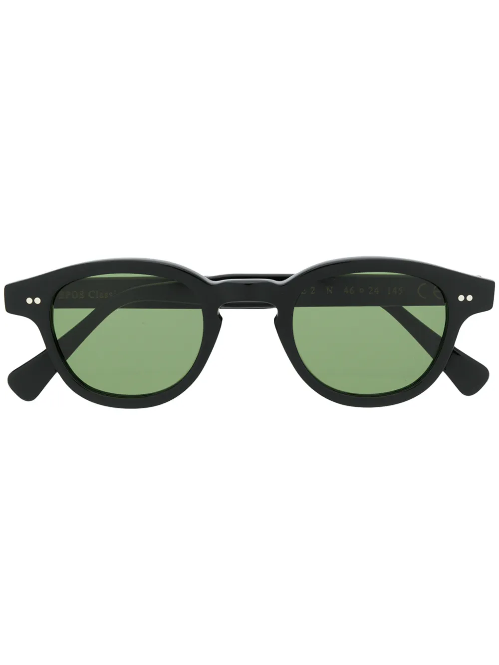 Массивные солнцезащитные очки от Epos. Прямые дужки с остро изогнутыми концами, застежка на шарнире, серебристые заклепки, темные линзы и гравировка логотипа. Цвет: зеленый.