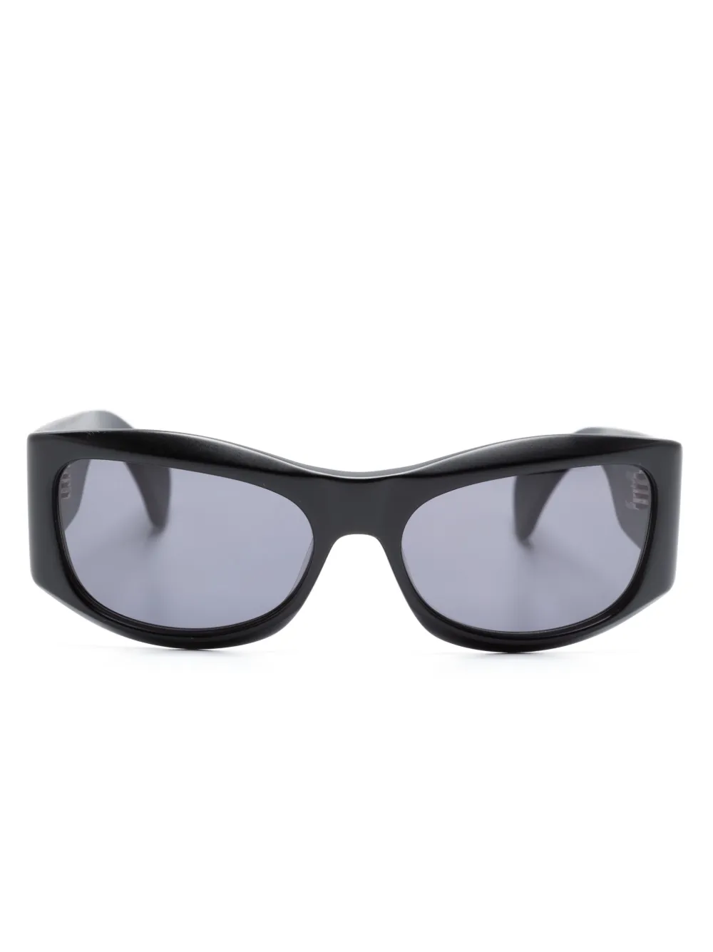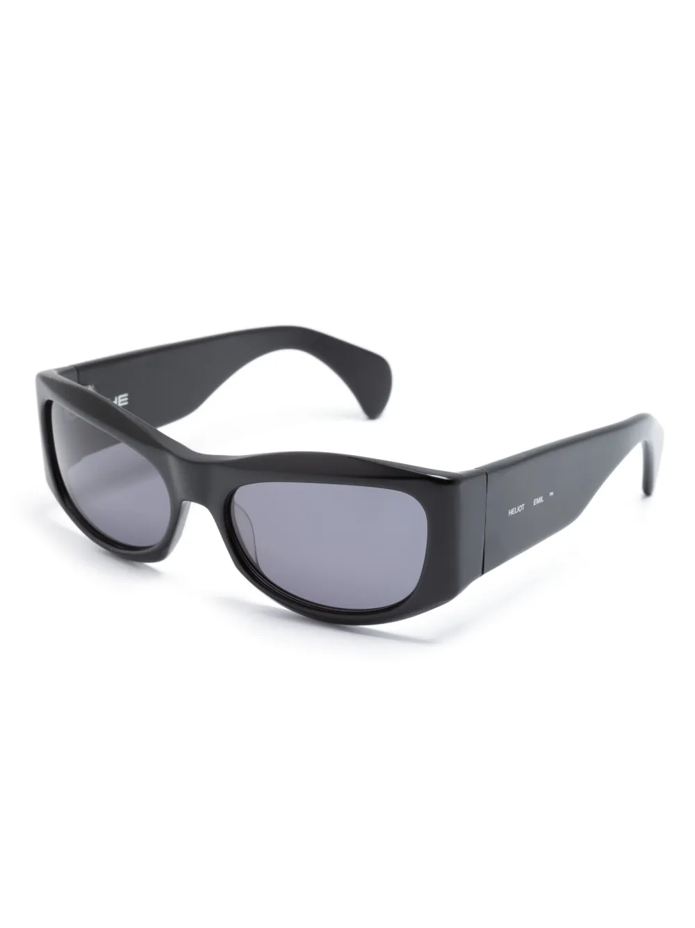 Черный, квадратная оправа, синие линзы, логотип на дужке, прямые дужки и дужки с закругленными концами. В комплект входит защитный чехол для очков.
