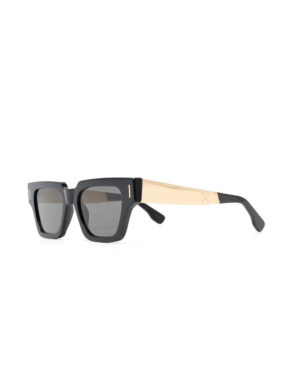 Черный, ацетат, глянцевая фактура, сочетание двух оттенков, серые линзы, линзы с защитой от ультрафиолета, скульптурные дужки, завышенный мост, дужки с закругленными концами и выгравированный логотип. В комплект входит защитный чехол для очков.