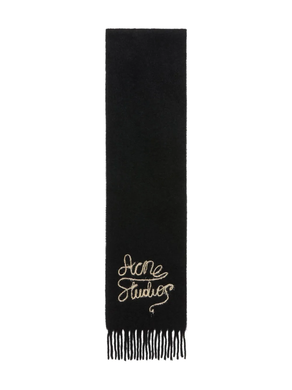 Шарф с бахромой и логотипом Acne Studios, черный 40 898₽