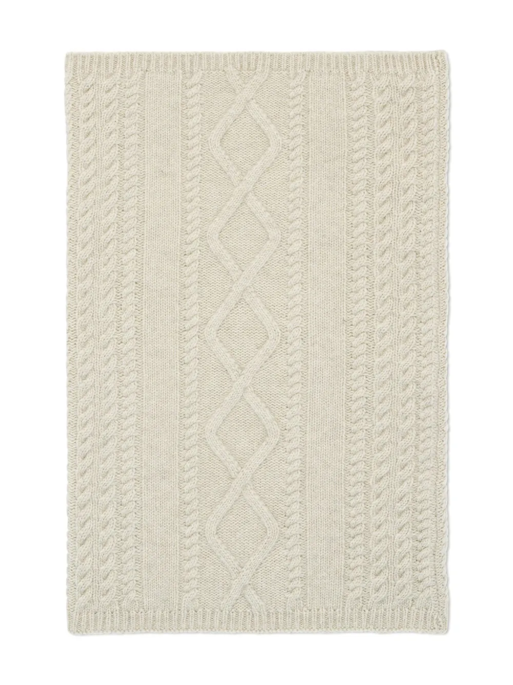 Снуд из кашемира шести-ниточного плетения овсяно-бежевого цвета с косами и рубчатыми краями