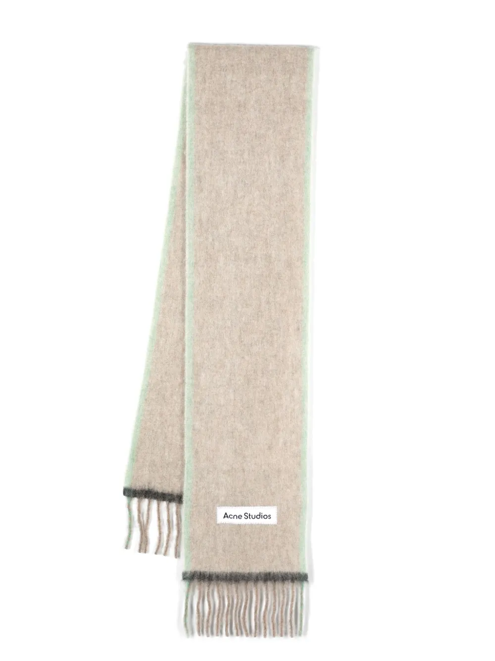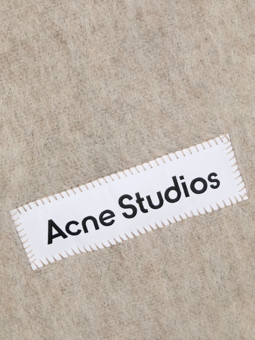 Шарф с бахромой и логотипом Acne Studios, нейтральный