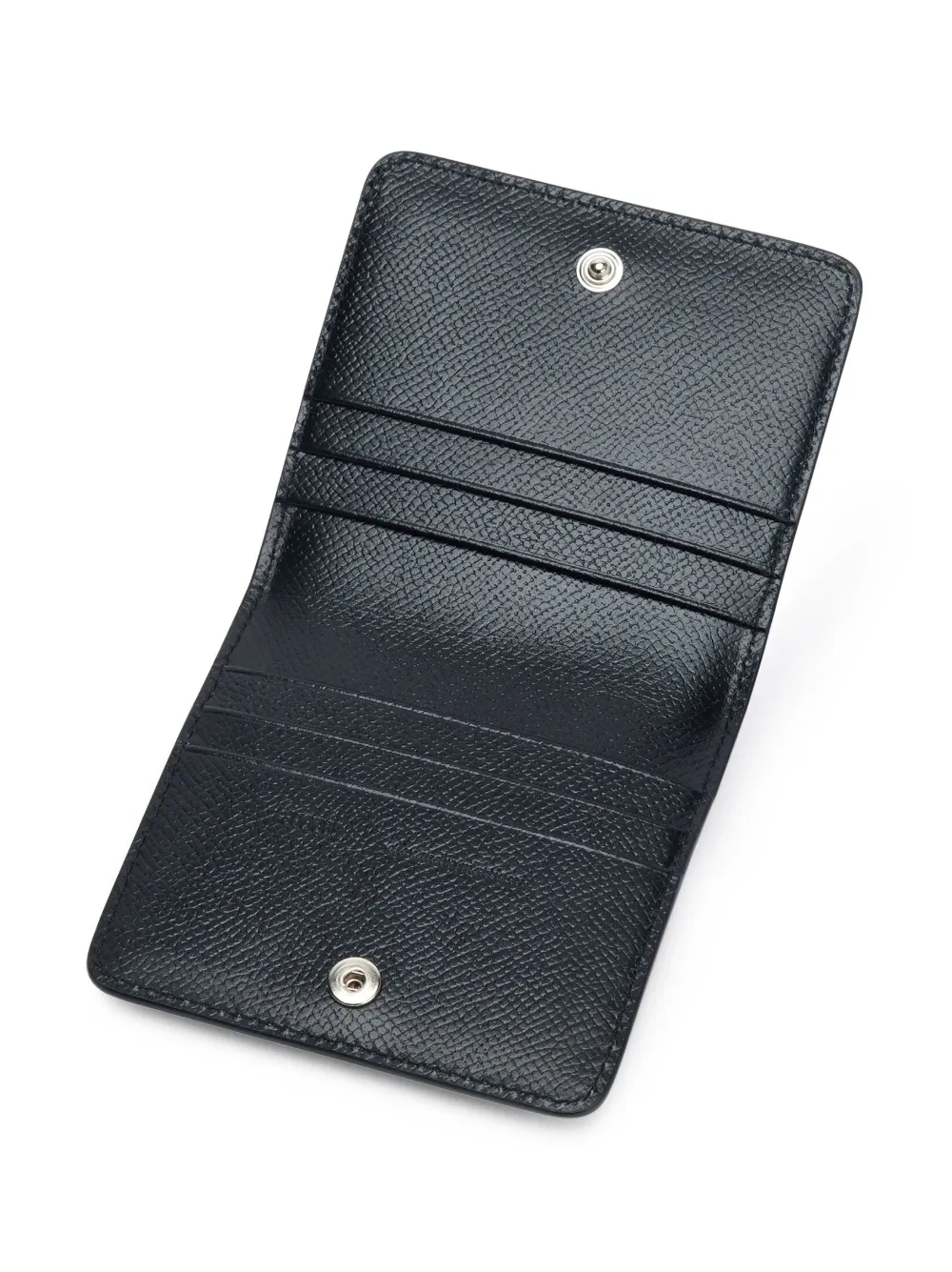 Черный, кожа, фактурная отделка, металлический логотип, два сложения, застежка на защелке, ремень на плечо и отделения для карт.
