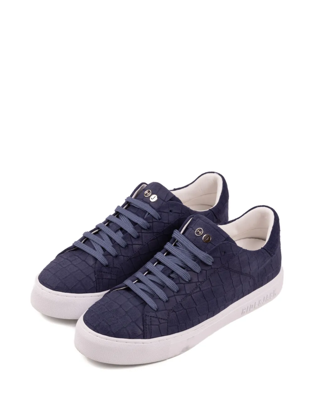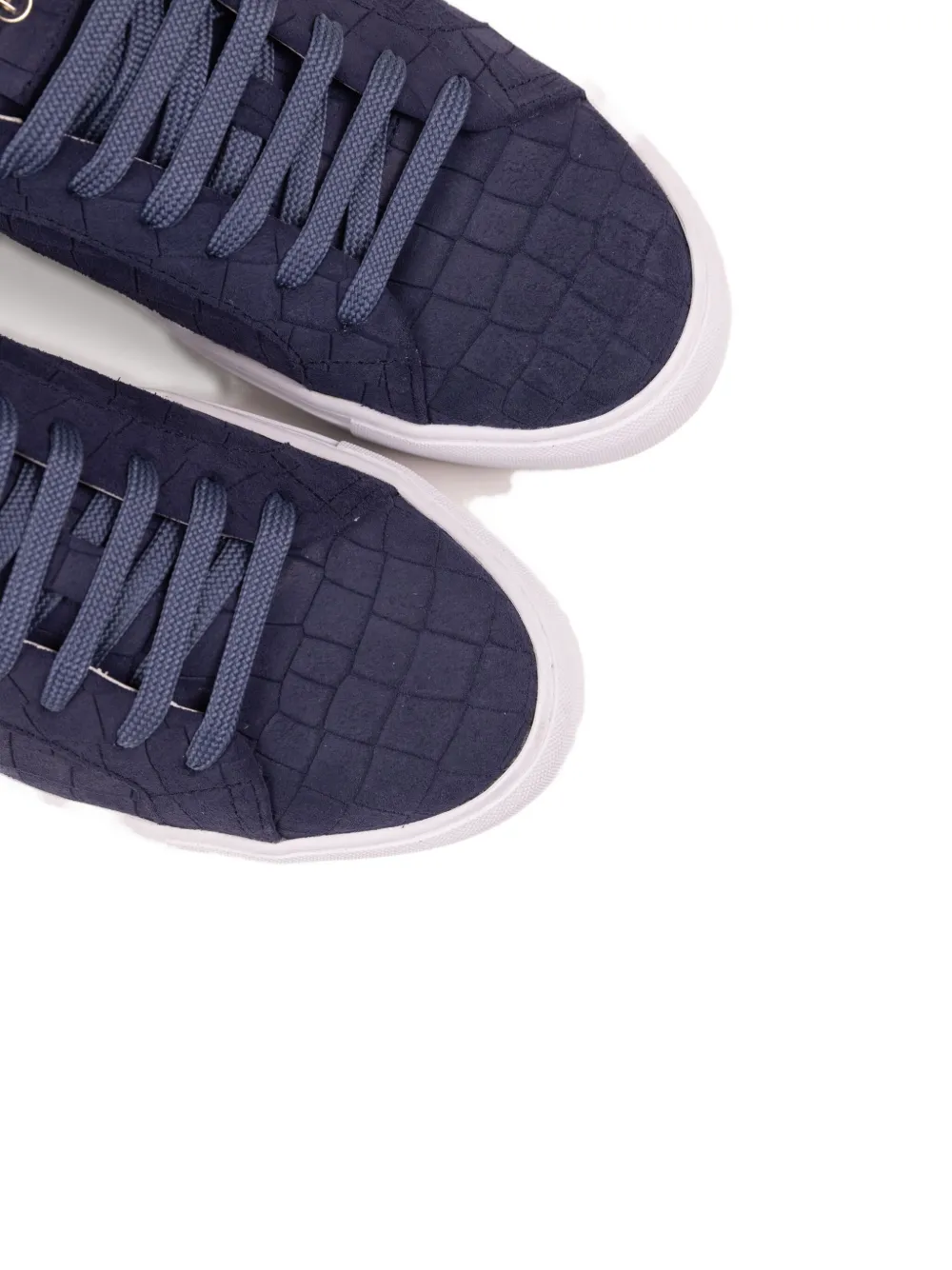 Синий, с тиснением, шнуровка спереди, круглый носок, плоская подошва