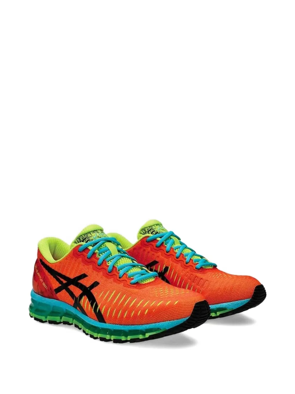Оранжевыйфактурный верхгелевая амортизациячерный графический принтбирюзовая подошвазастежка на шнуровке