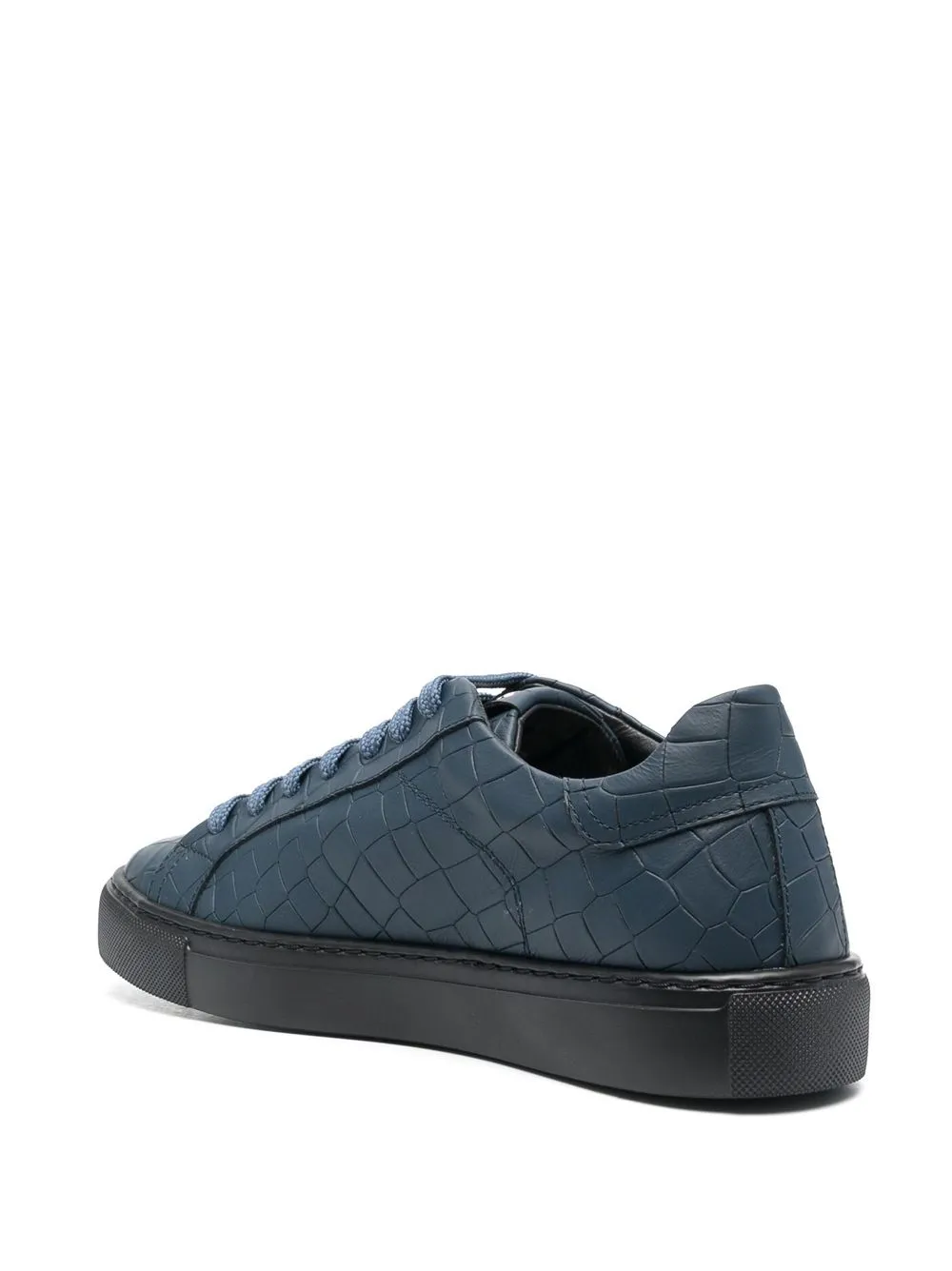 • Черный/синий, телячья кожа, тиснение под кожу крокодила, нашивка с логотипом на язычке, закругленный носок, шнуровка спереди, стелька с логотипом и массивная резиновая подошва.
