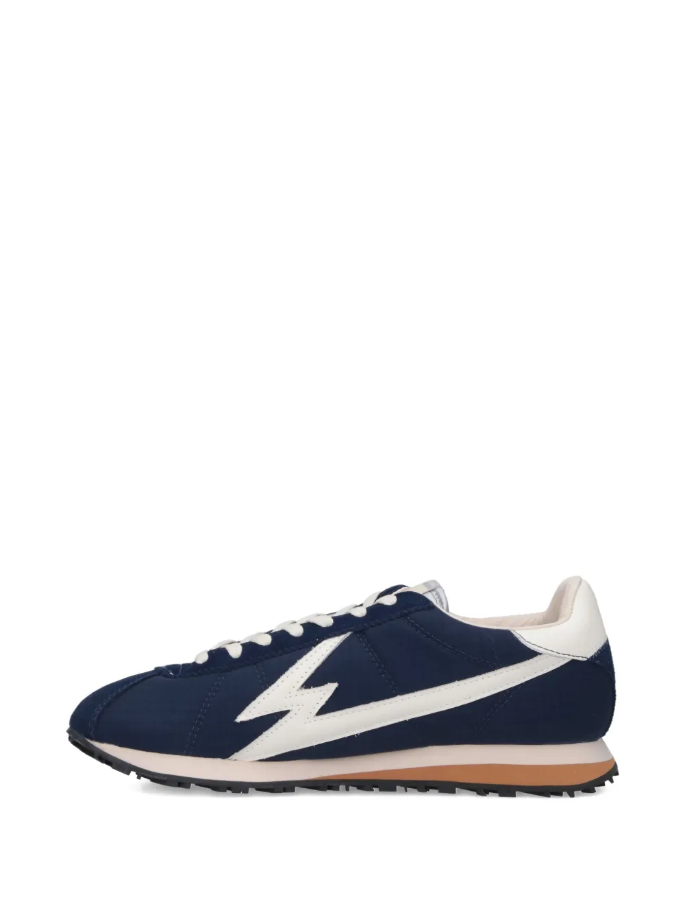 Синяя расцветка с контрастными вставками, шнуровка, круглый носок, резиновая подошва, принт с логотипом на боковой стороне