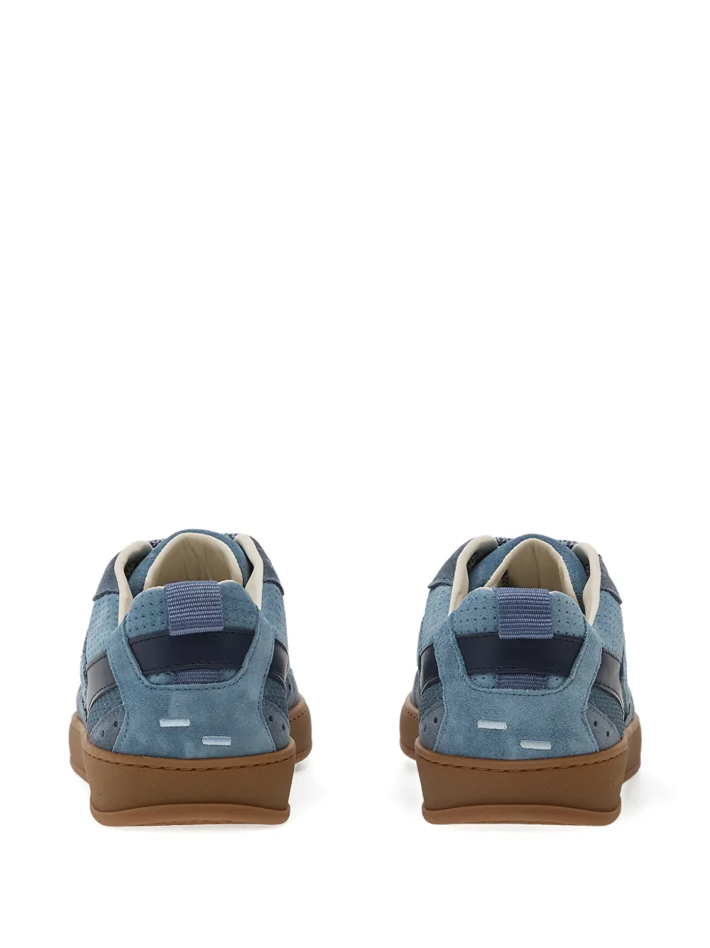 Синий цвет, перфорированные детали, однотонные вставки, шнуровка, плоская резиновая подошва, круглый носок