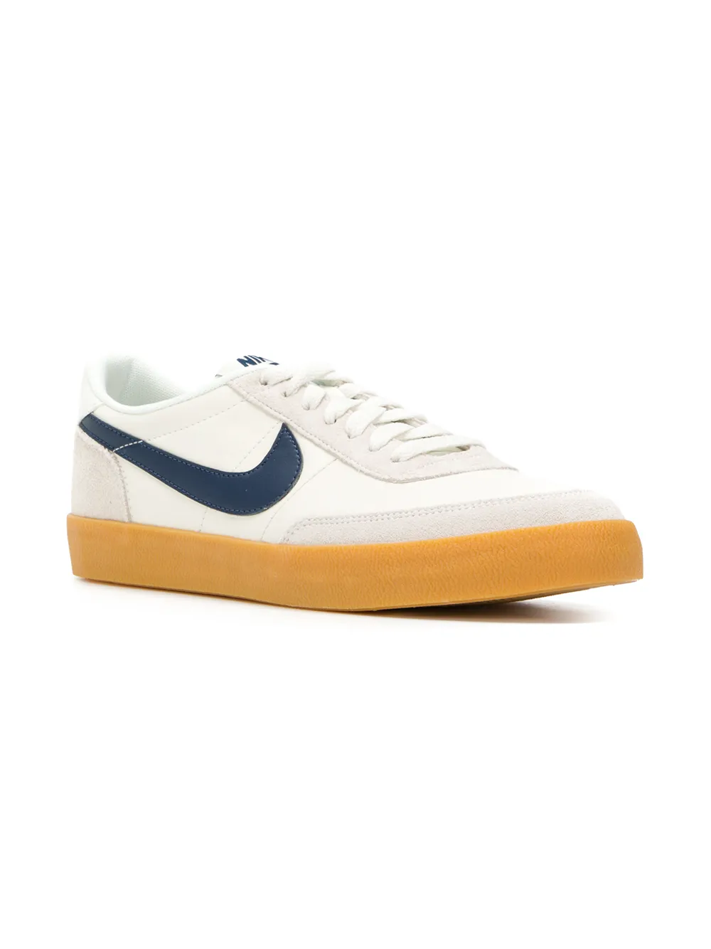 • Белые кроссовки 'Killshot 2' из кожи и замши от Nike(Найк). Закругленный носок, плоская резиновая подошва, шнуровка спереди, фирменная галочка Nike, дизайн колор-блок, фирменный дизайн каблука, заплатка с логотипом на язычке, фирменная стелька.