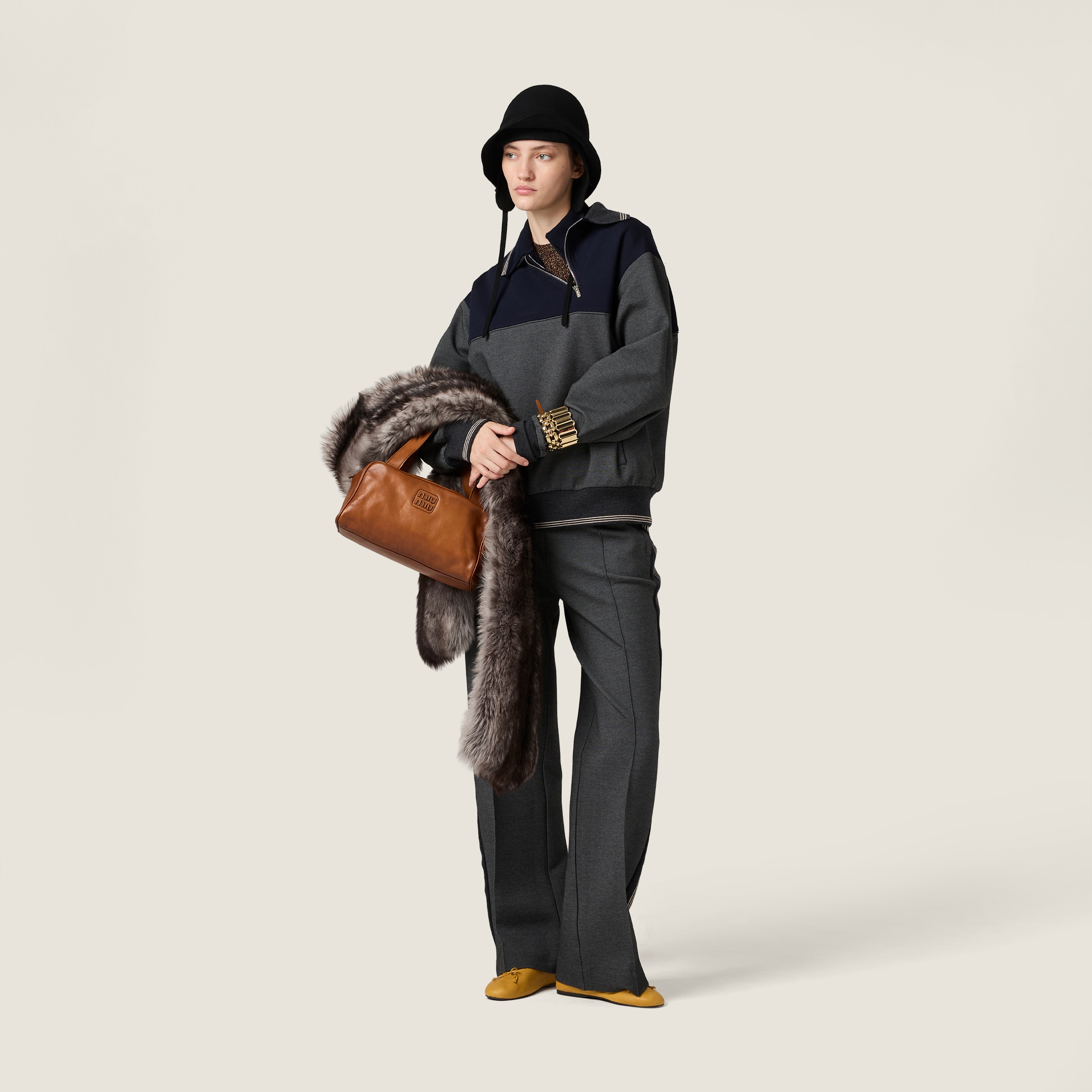 Элегантный спортивный дух этого свитшота подчеркивается свободным кроем и изысканной боковой молнией, воплощая фирменный экспериментальный стиль Miu Miu и выражая постоянно развивающуюся женственность.