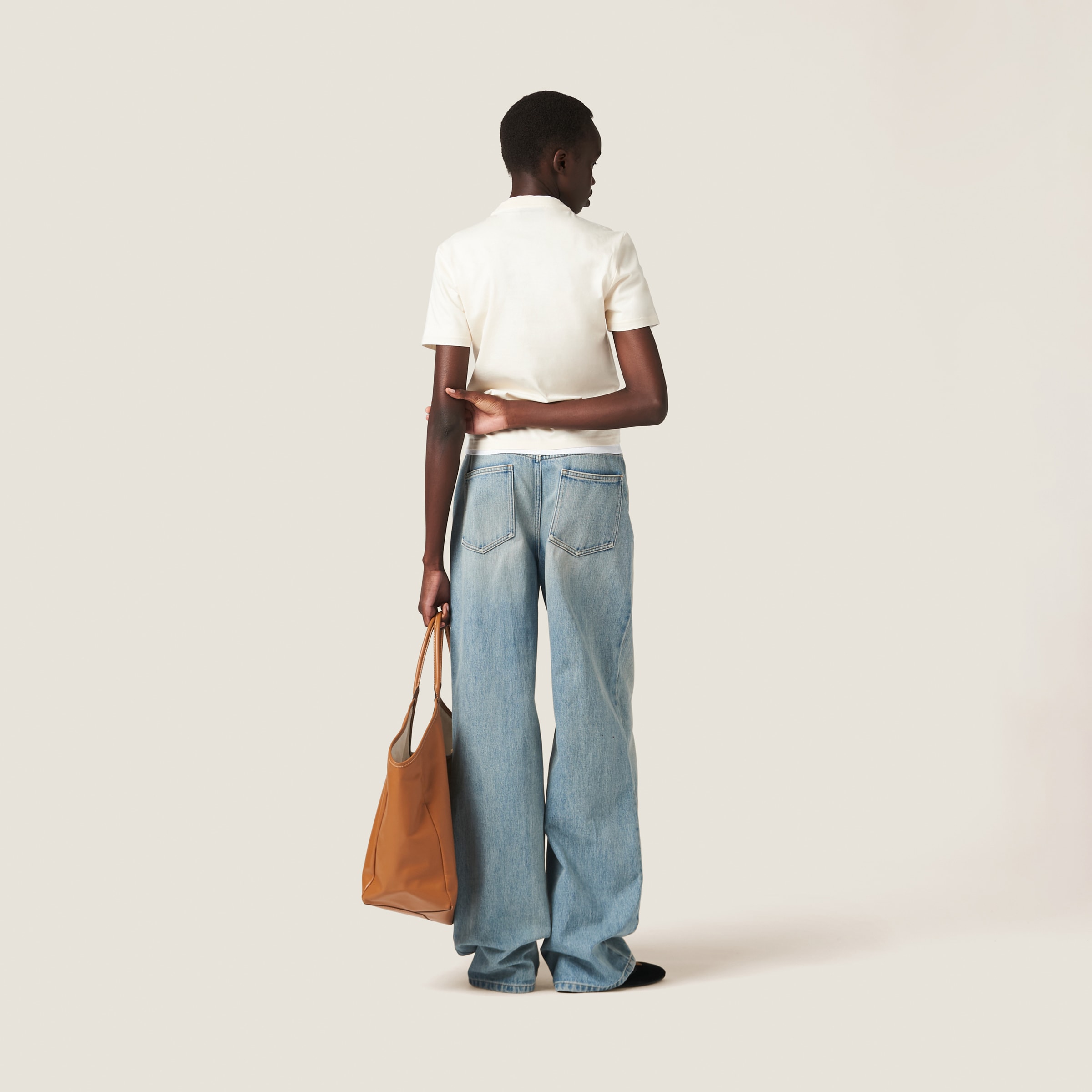 Вышитый логотип Miu Miu украшает простые линии этой футболки, придавая изделию культовый и узнаваемый характер.