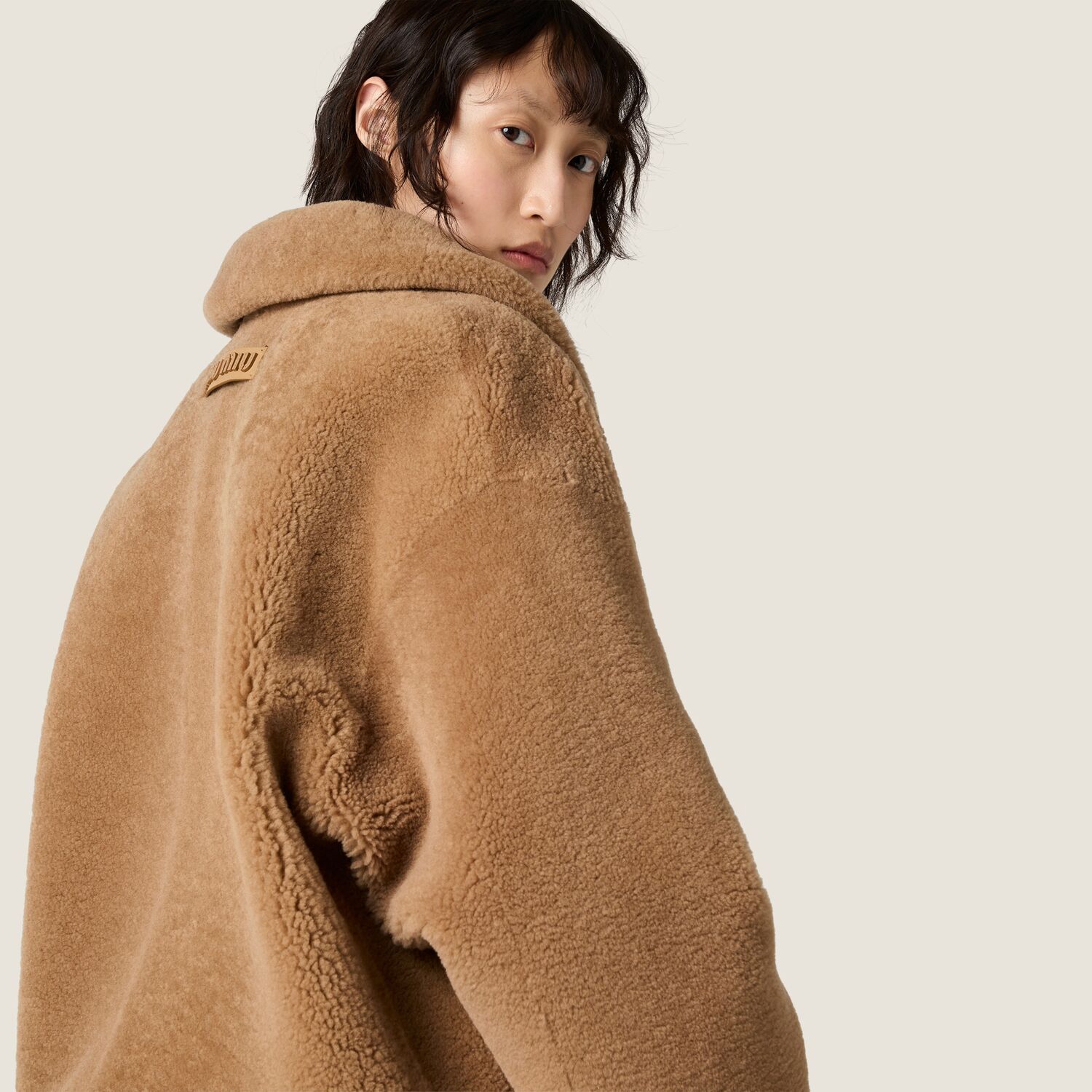 Куртка-блузон из овчины MIU MIU, бежевый корк