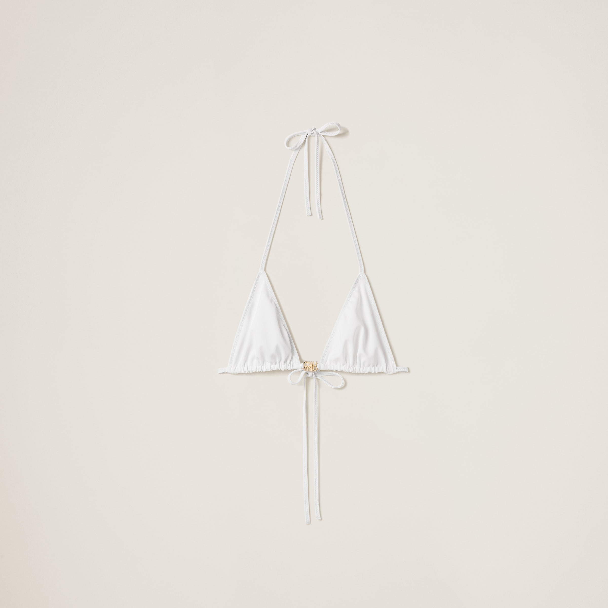 Легкая, мягкая, плотная и прочная текстура джерси сочетается с изысканной завязкой на спине в этом бюстгальтере. Изделие, которое можно носить как верх от купальника или использовать для создания стильных образов сезона, украшено логотипом Miu Miu на бирке, добавляя фирменный акцент с культовой ноткой.
