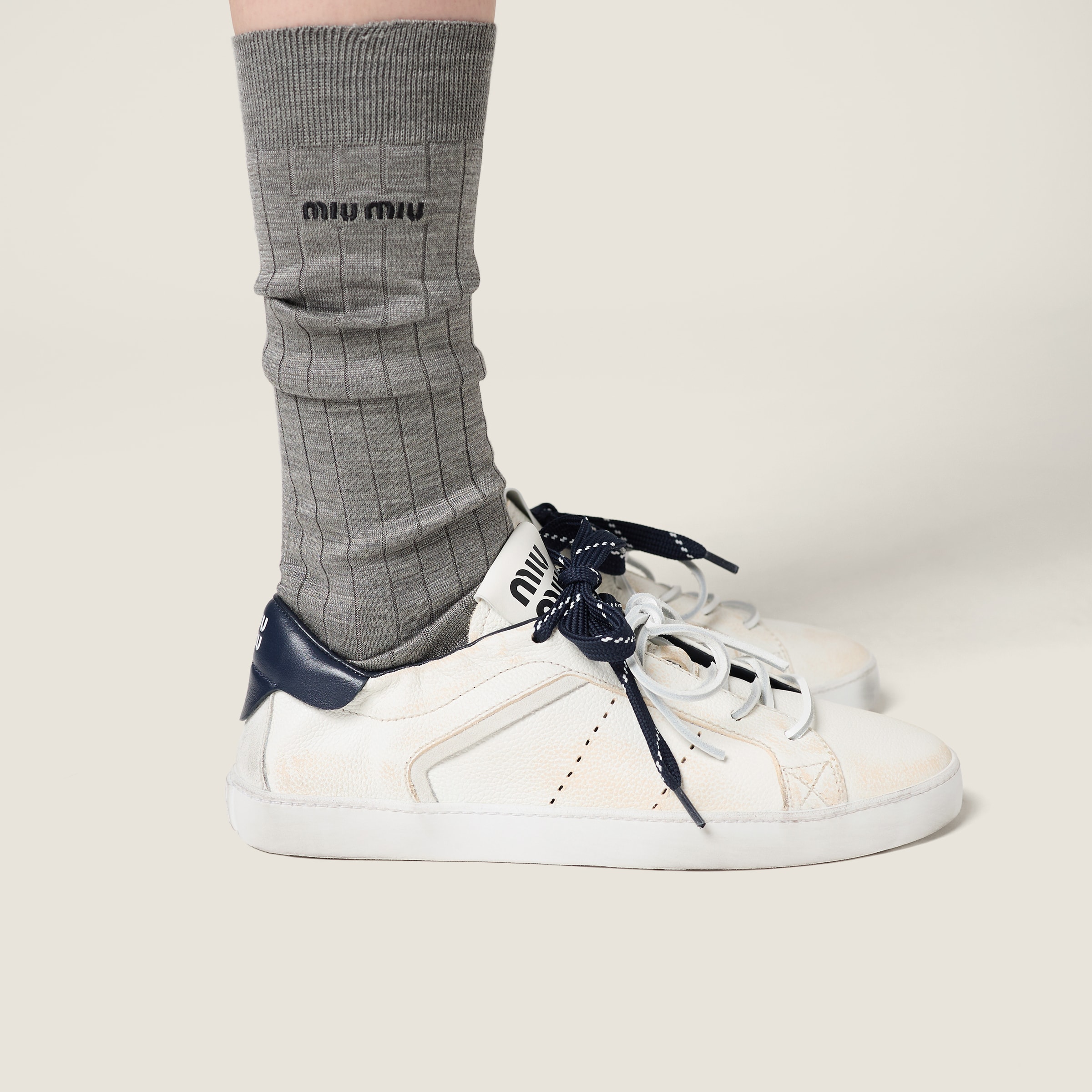 Кожаные кроссовки deco' MIU MIU, белый/королевский синий