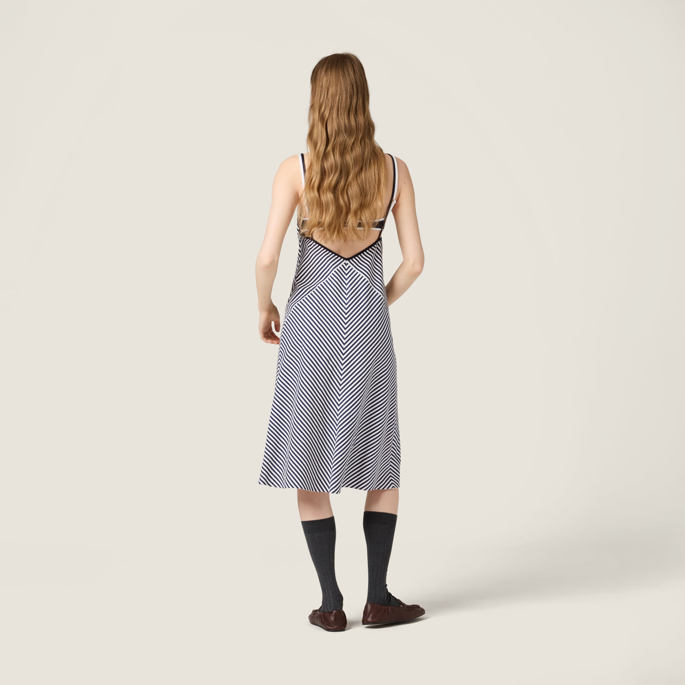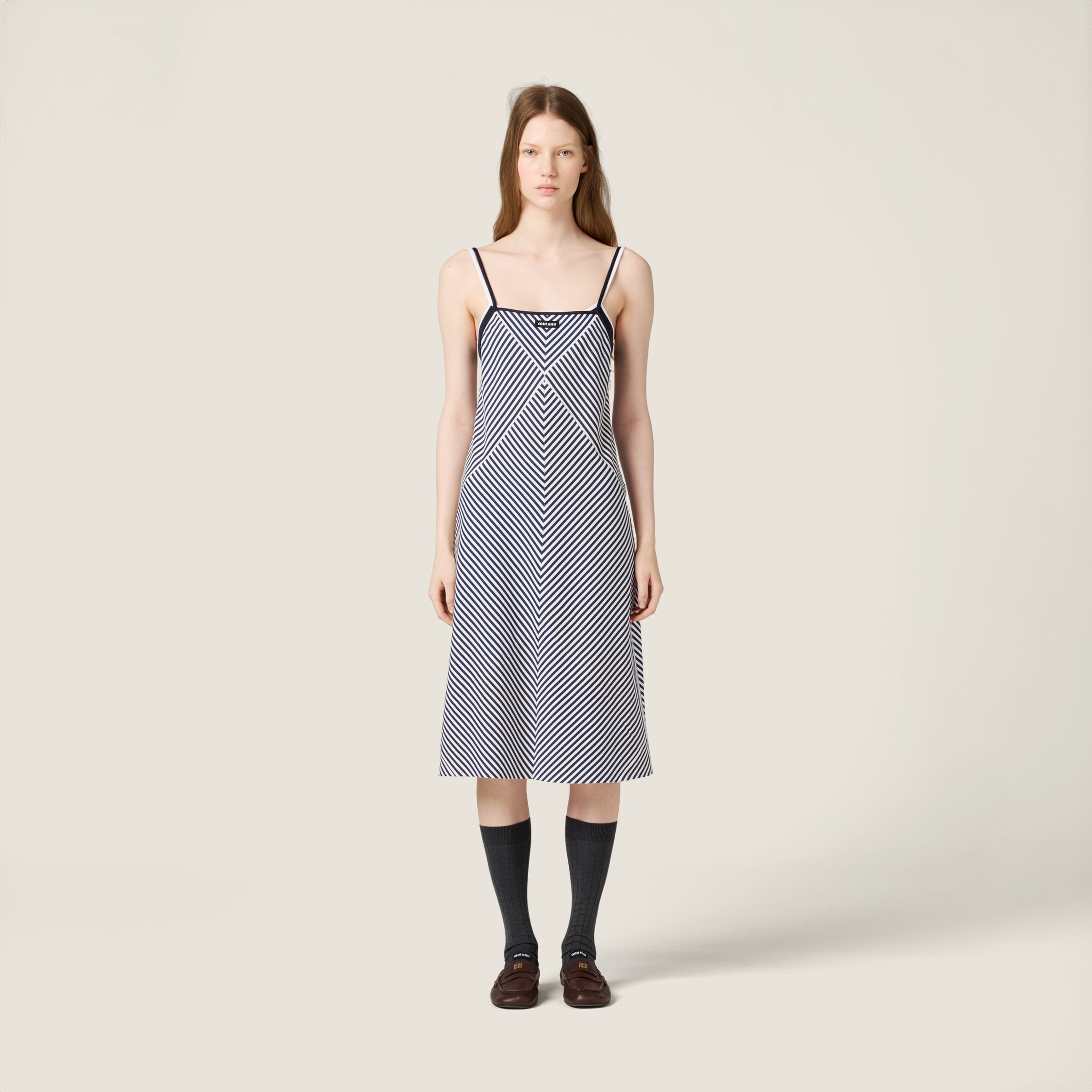 Платье из трикотажа в полоску MIU MIU, белый/синий