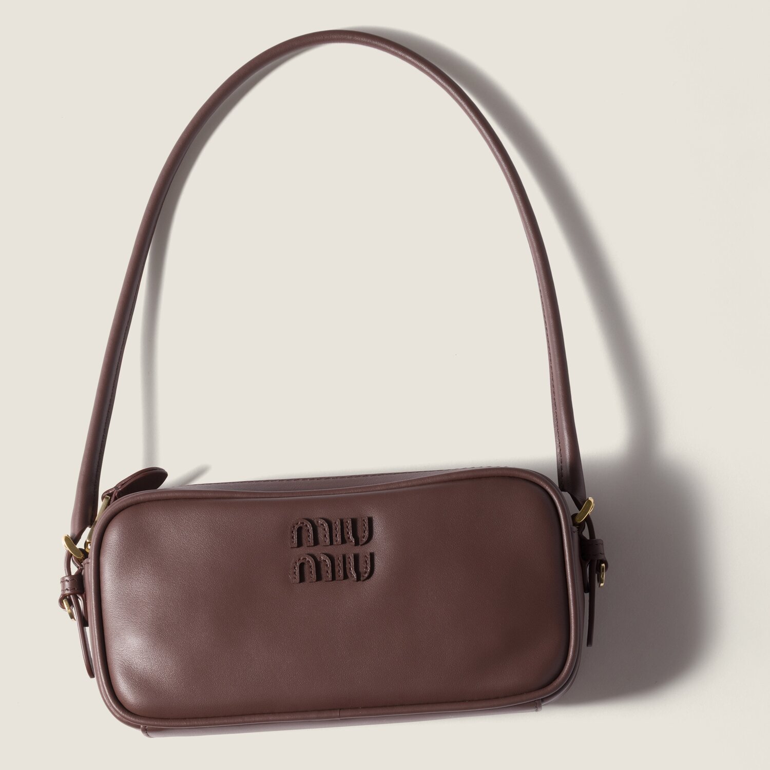 Эта слегка прокатанная кожаная сумка-пенал с изысканным, компактным дизайном вдохновлена культовыми сумками Miu Miu и отличается элегантной функциональностью благодаря плечевому ремню, который позволяет носить ее на плече.