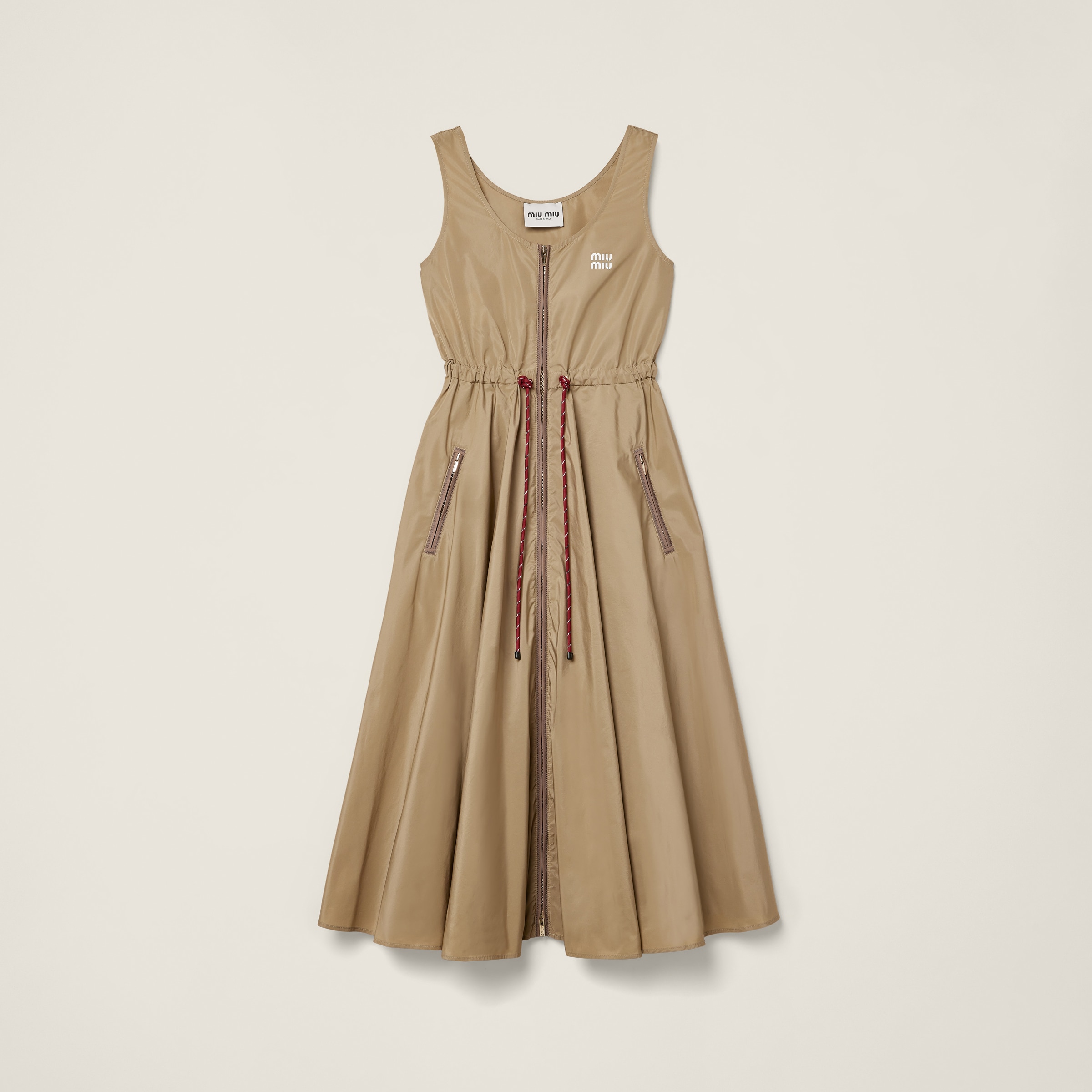 Макси-платье из технической ткани MIU MIU, глиняно-серый 307 199₽