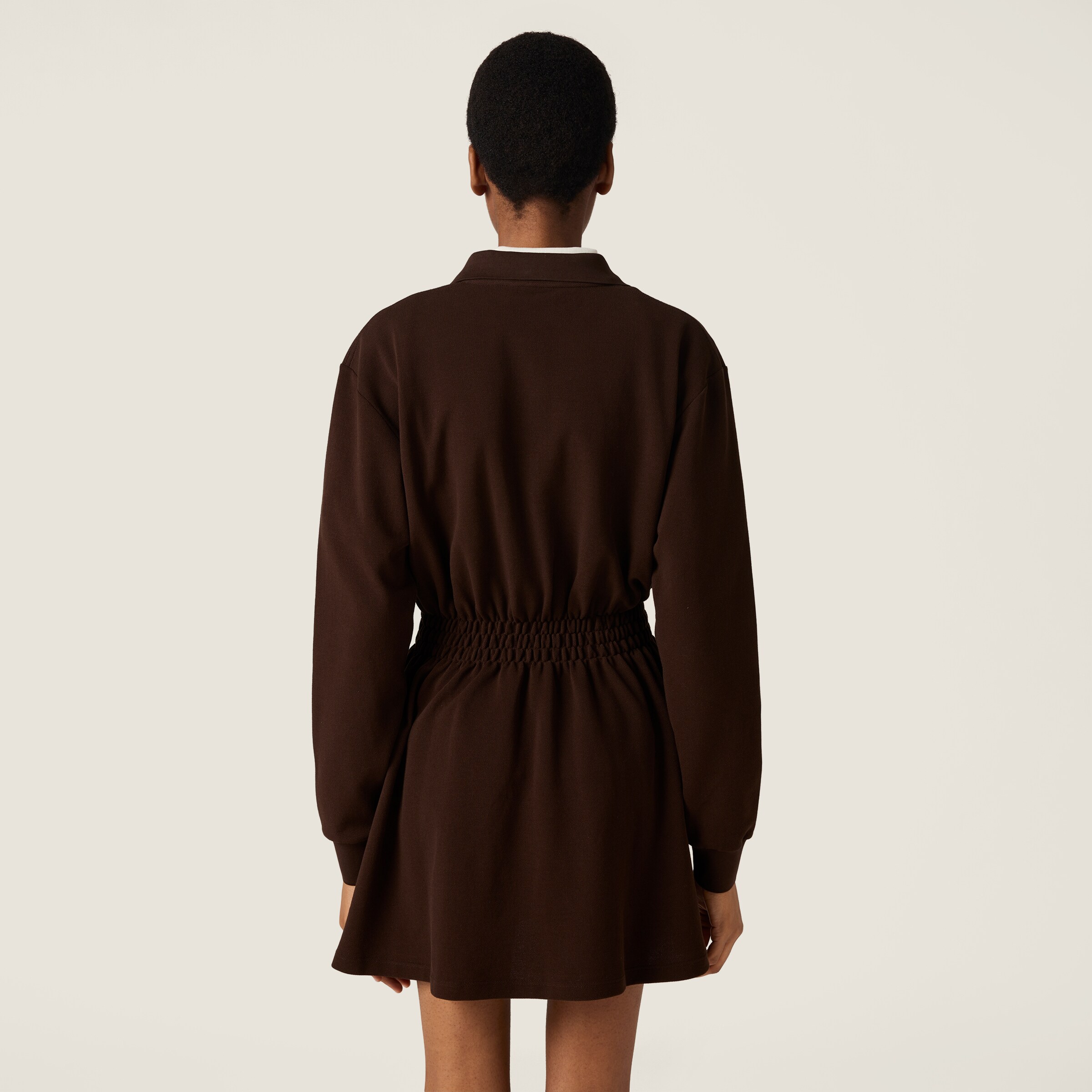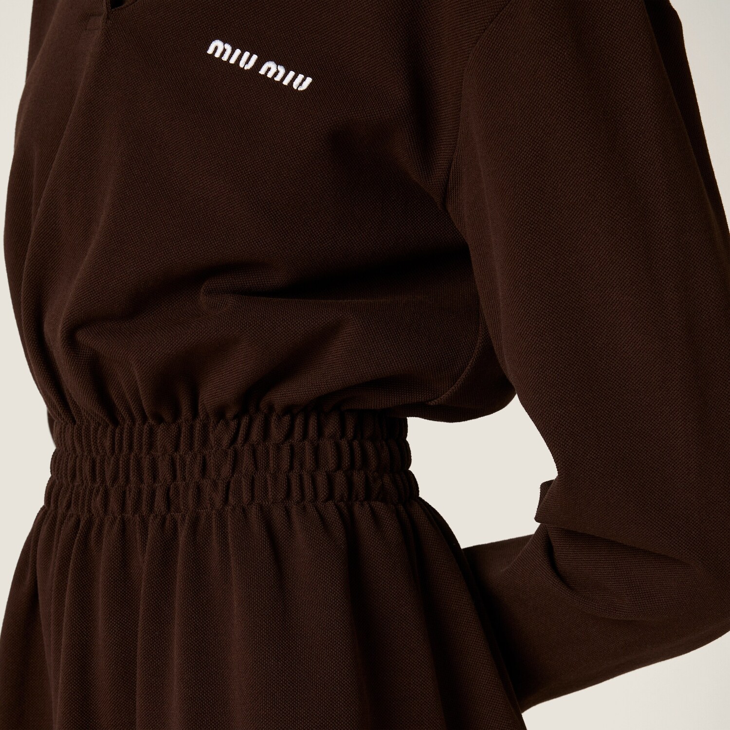 Мини-платье из хлопкового пике MIU MIU, какао коричневый