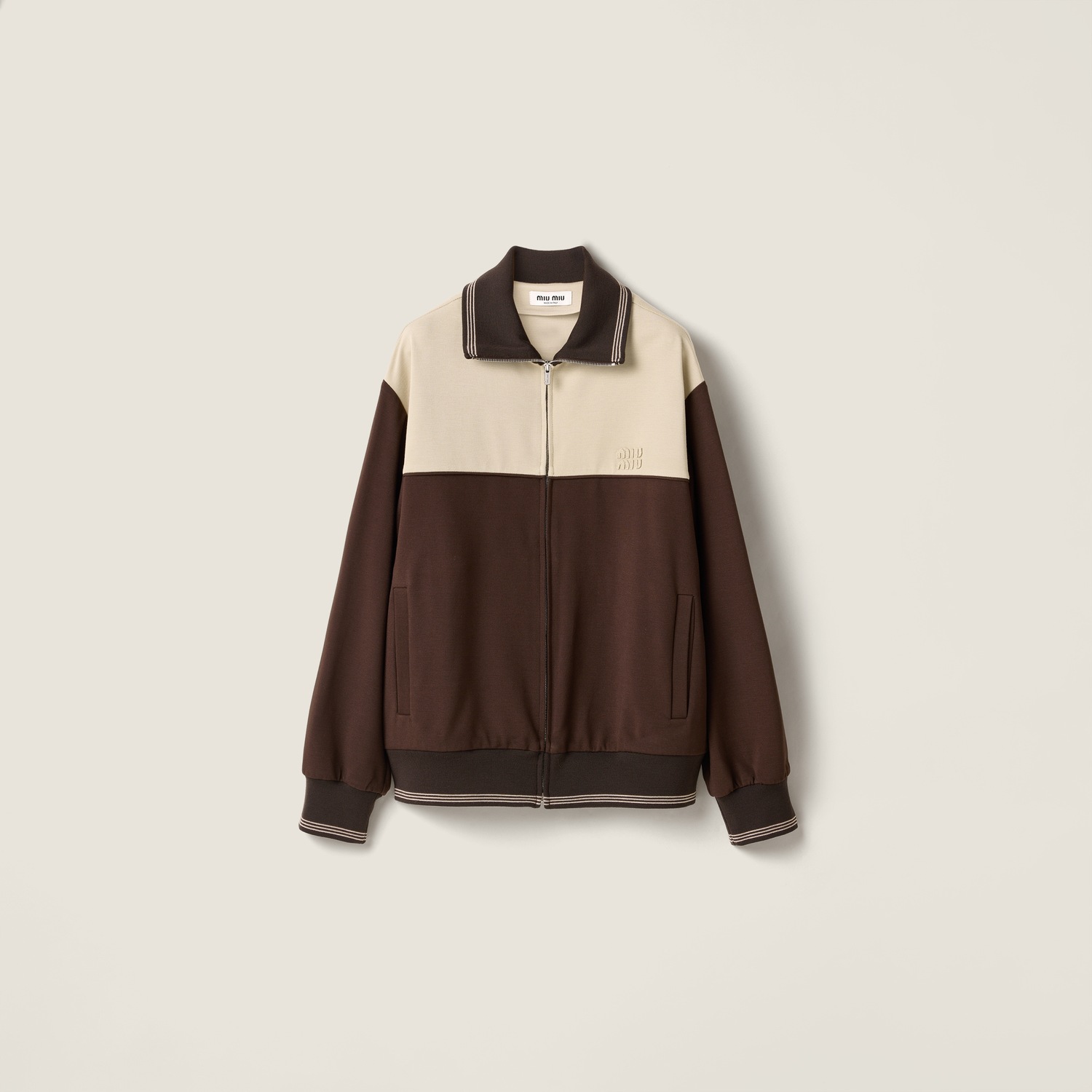 Изысканный спортивный стиль этой толстовки на молнии из вискозы подчеркивается свободным кроем и изящными вышитыми деталями с логотипом, воплощая подлинный экспериментаторский подход Miu Miu и выражая постоянно развивающуюся женственность.