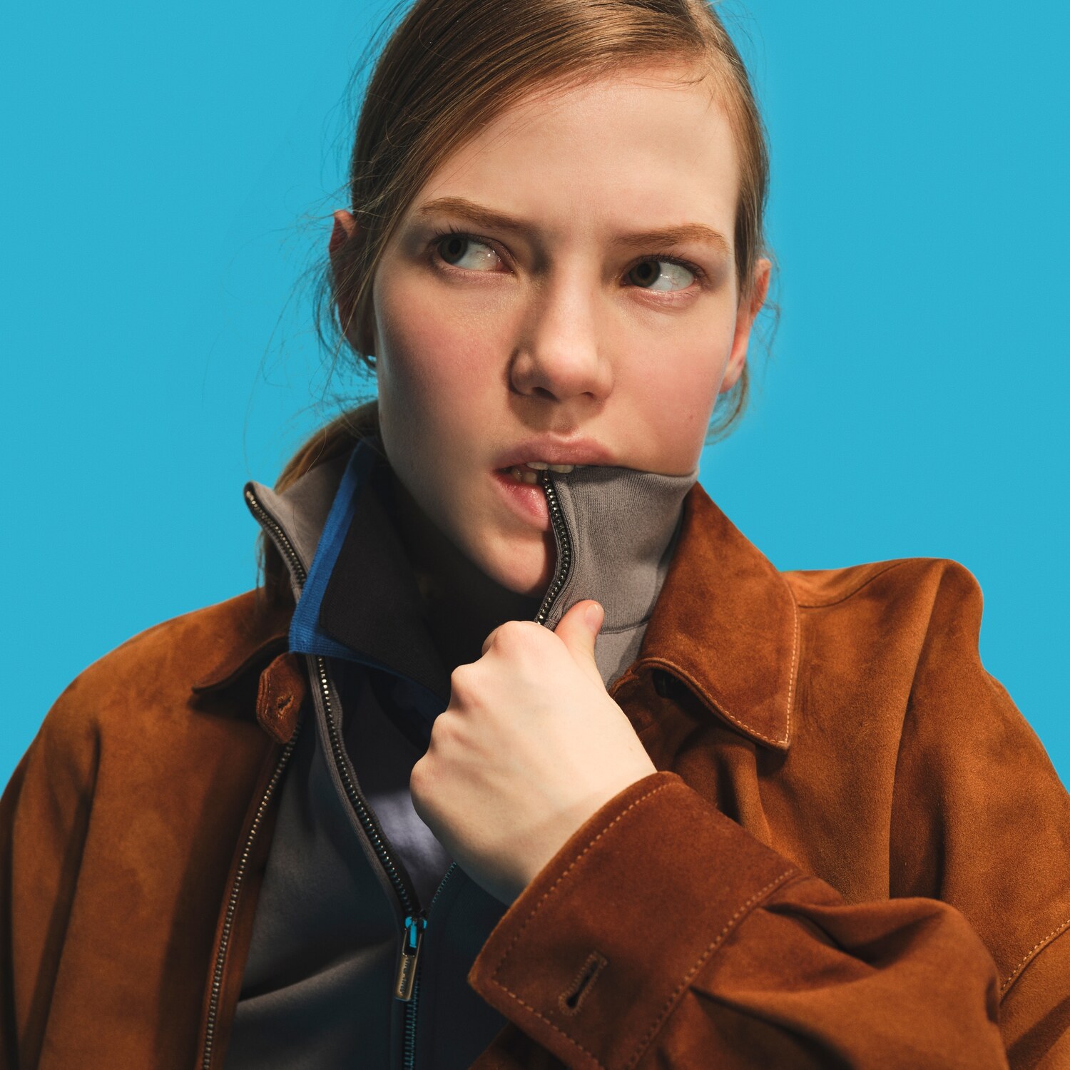 Преппи-отсылки этого жакета получают новое воплощение в мягкой замше, искусно обработанной для создания вида поношенности и винтажного настроения.