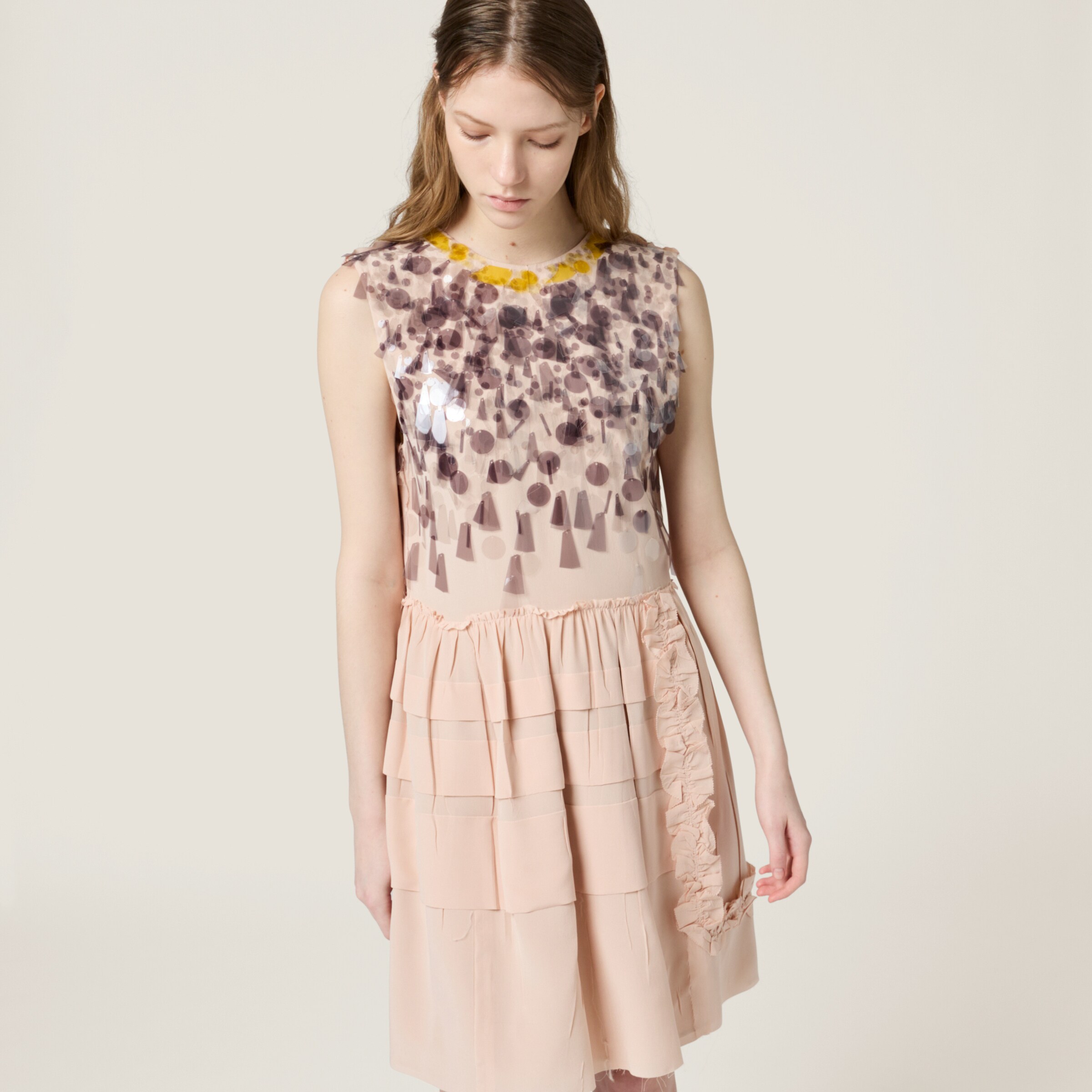 Вышитое платье из марокена MIU MIU, персиковый