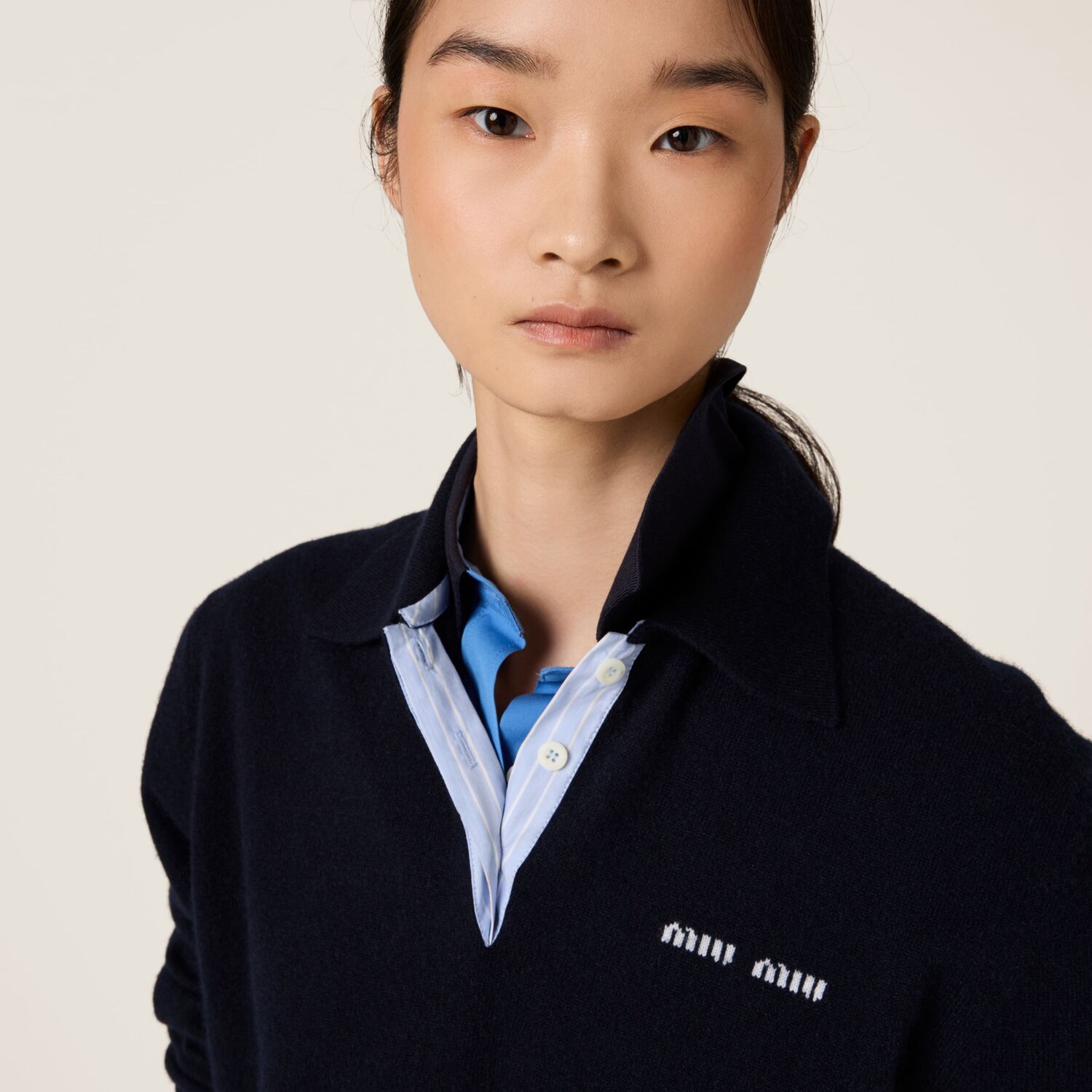 Кашемировый пуловер-поло MIU MIU, темно-синий