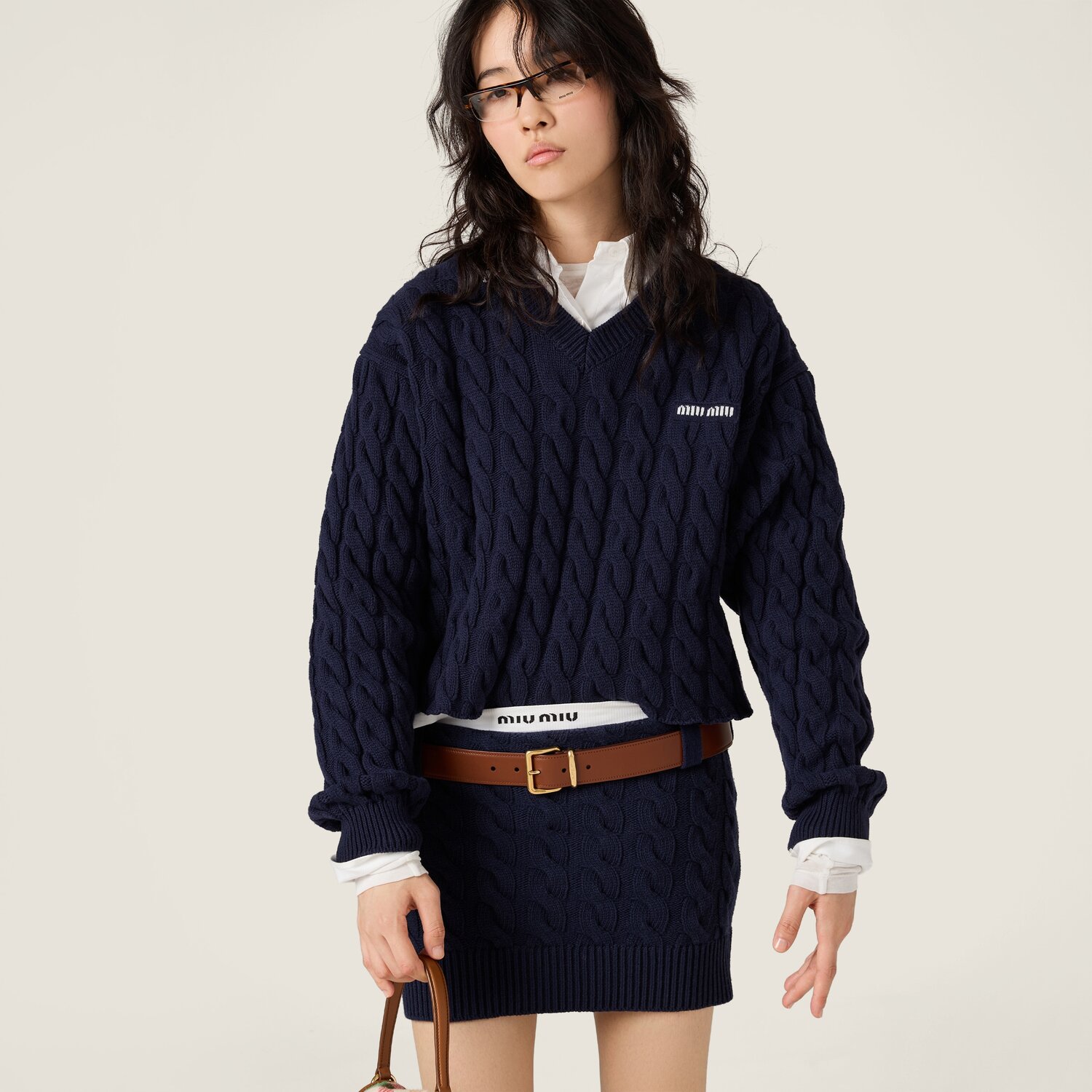 Элегантный узор в виде кос придает этому свитеру рельефность, добавляя мягкую глубину линиям и обновляя классический преппи-гардероб через женственную, современную эстетику.