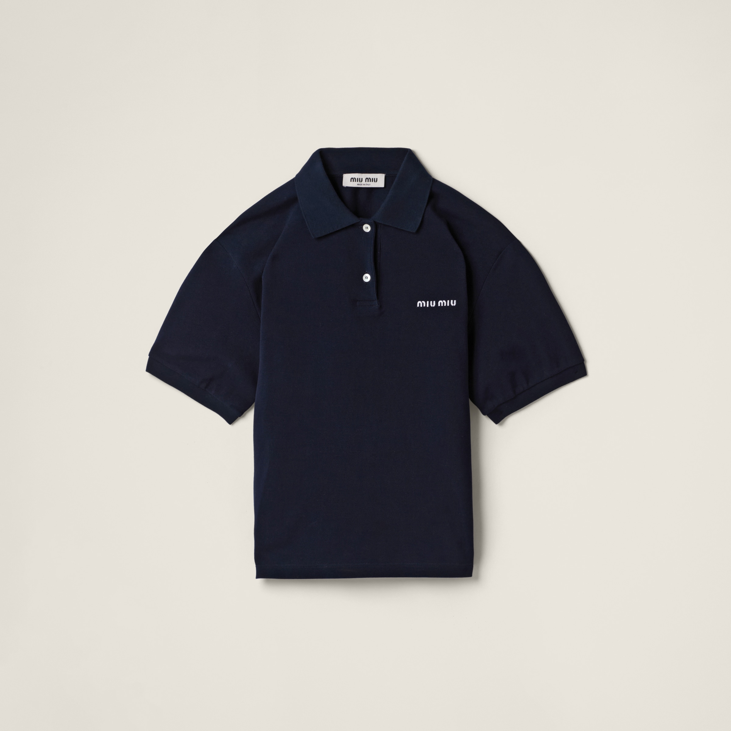 Повседневный стиль поло сочетается с узнаваемым характером Miu Miu в этой рубашке-поло из хлопкового пике. Вышитый логотип завершает дизайн.